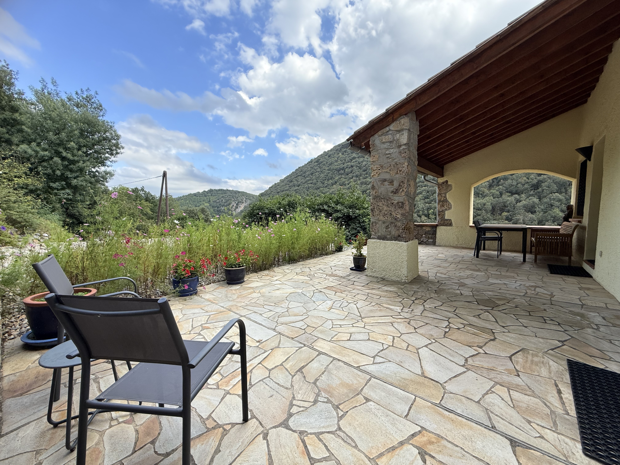 A seulement 15 minutes d'Arles sur Tech, à proximité de la frontière espagnole, entièrement rénové d'après des plans d'un architecte, dans le respect de l'authenticité et avec des finitions haut de gamme. Implanté au coeur de 41 hectares de nature préservée, entre prairies, forêts et avec un accès privé à une rivière, cette propriété rare d'environ 260 m2 offre calme absolu, intimité et un cadre de vie exceptionnel. A l'intérieur, les volumes généreux et la lumière naturelle subliment les matériaux nobles offrant une ambiance à la fois chaleureuse et élégante. La chambre principale, avec ses murs en pierres apparentes, spacieuse et plein de caractère, constitue un véritable cocon.