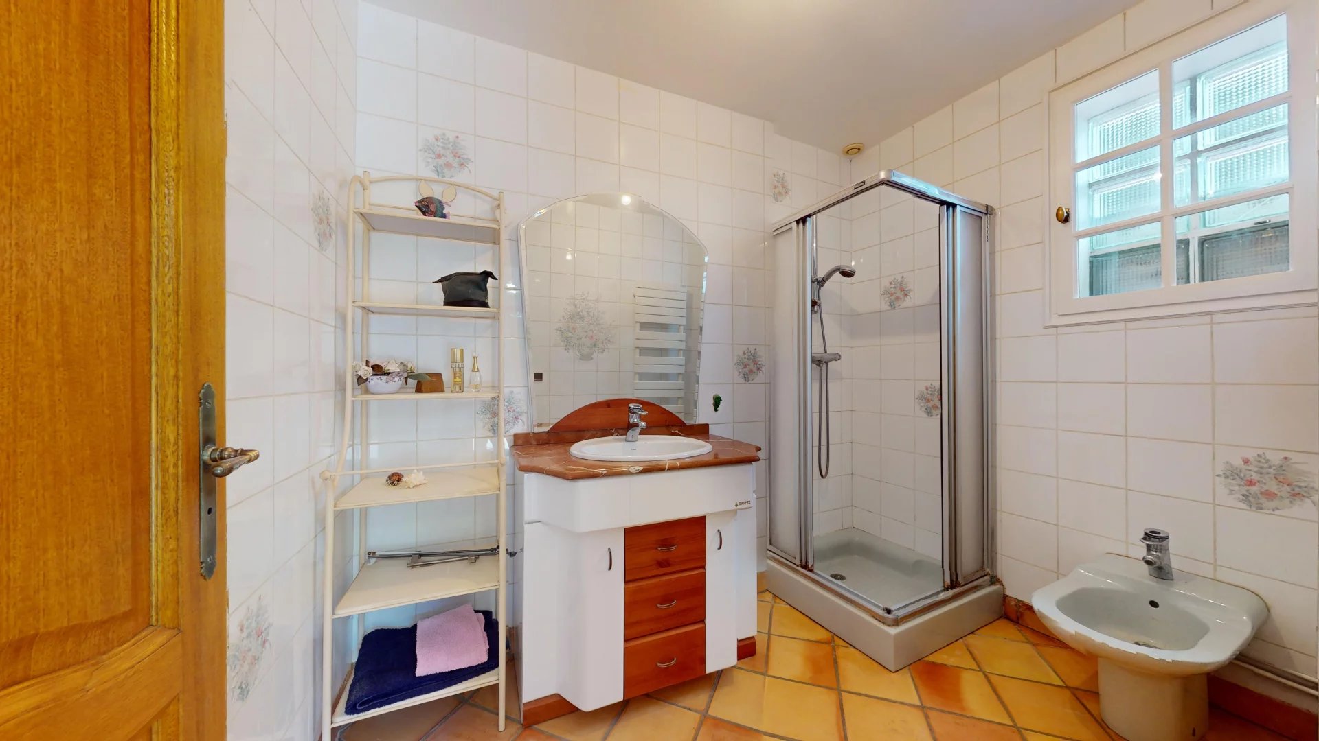 La CHAMBRE AU REZ-DE-CHAUSSEE donnant également sur la terrasse arrière, bénéficie d’une SALLE D’EAU PRIVATIVE avec cabine de douche favorisant ainsi LA VIE DE PLAIN-PIED.