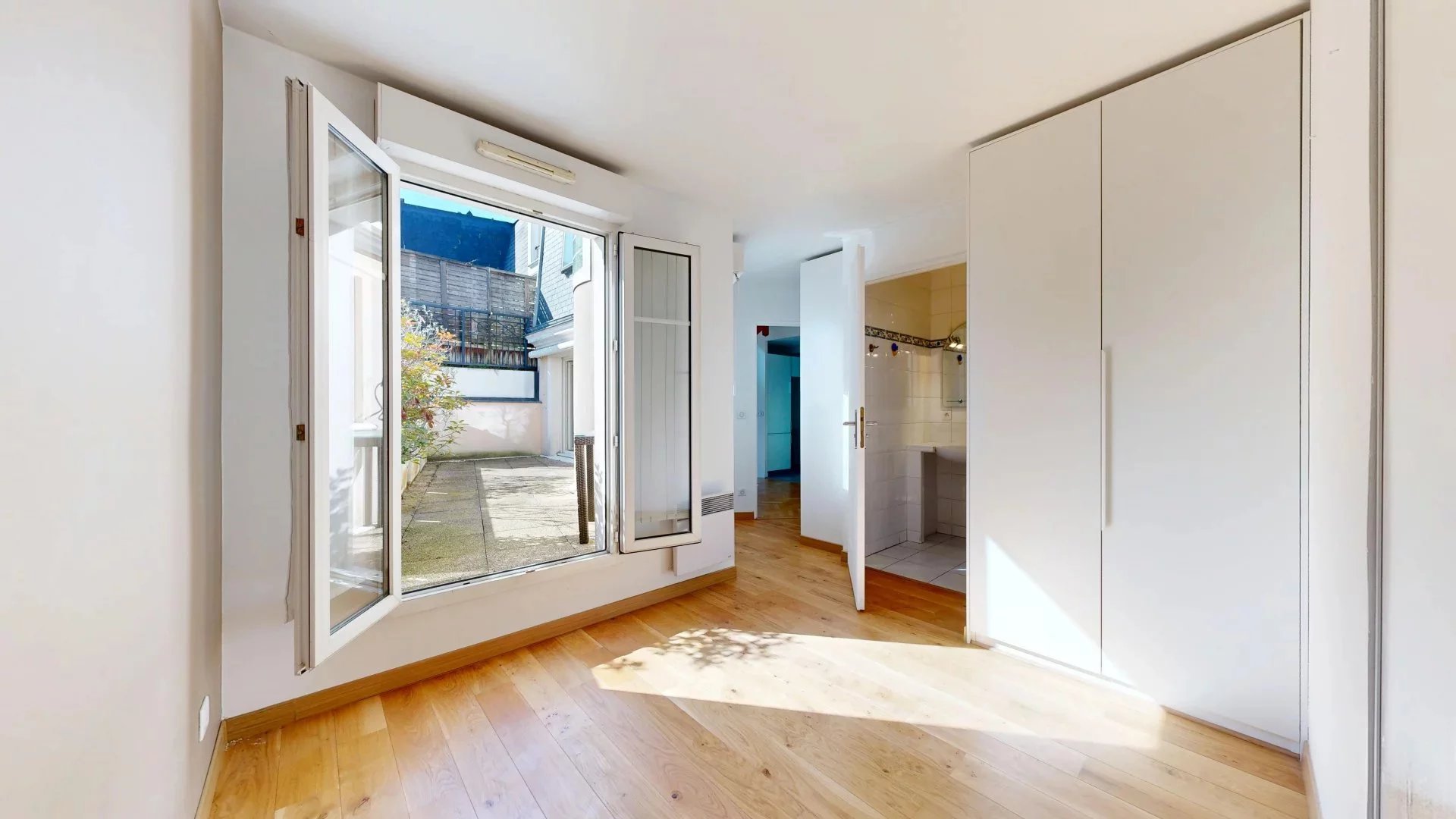 Dès l’entrée, vous découvrirez une première chambre avec sa salle d’eau, un WC indépendant, une cuisine récemment refaite avec des matériaux de qualité, ainsi qu’un séjour traversant offrant un accès direct à deux espaces extérieurs : un balcon avec vue sur la gare et une terrasse côté opposé, parfaits pour profiter de l’extérieur en toute tranquillité.