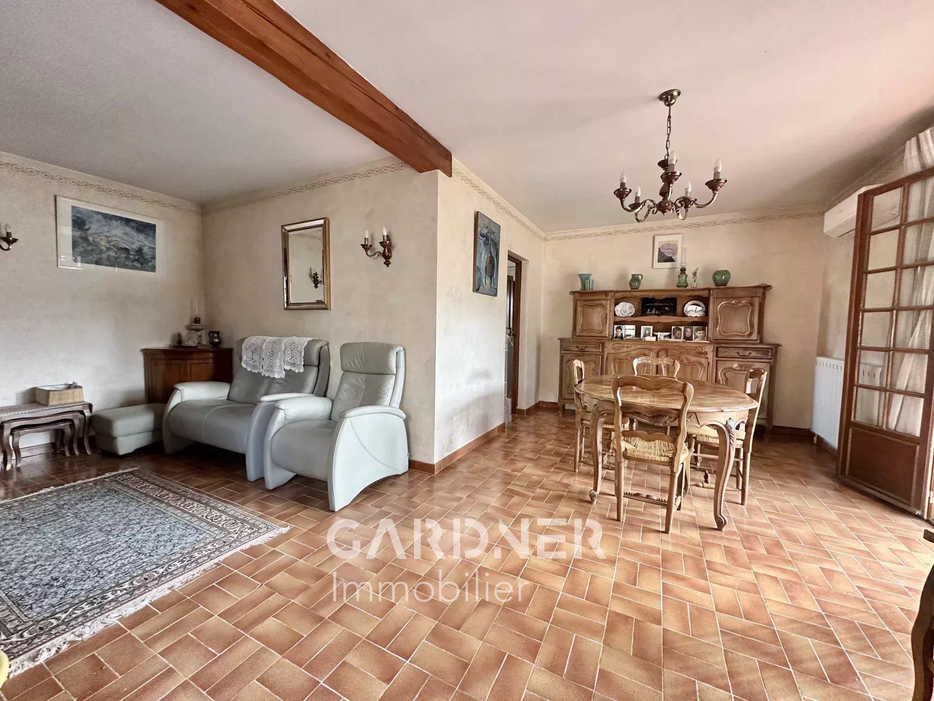 Dès l’entrée, vous découvrez un spacieux séjour baigné de lumière, qui se prolonge par une salle à manger conviviale, parfaite pour partager des moments en famille ou entre amis. La cuisine, à la fois fonctionnelle et accueillante, complète cet espace de vie.
