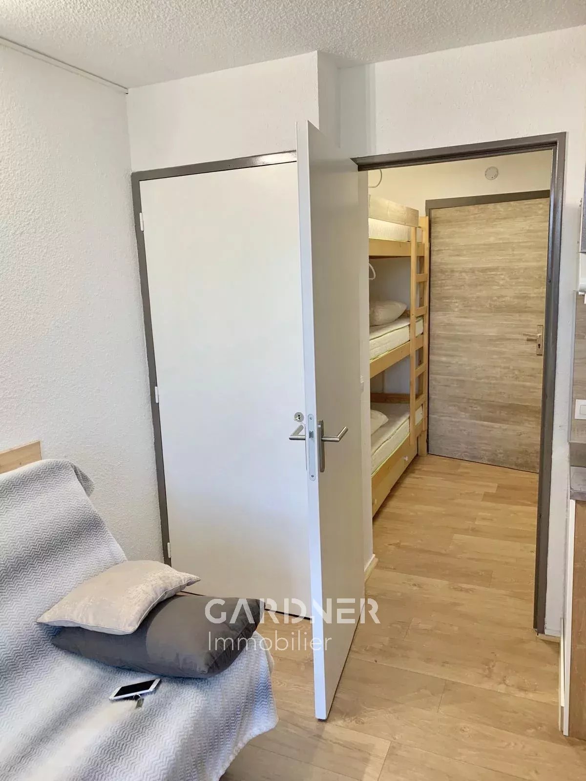 EXCLUSIVITÉ – Appartement en rez-de-chaussée à double entrée une donnant un accès par le balcon et une par l’intérieur de l’immeuble de 18.53 m² avec balcon. situé dans la résidence L’Edelweiss. au cœur de la station. à proximité des pistes et de l’office du tourisme. Ce bien. idéal pour 5 couchages. comprend : Une entrée avec un coin montagne équipé de trois lits superposés. Une pièce de vie lumineuse avec kitchenette. ouvrant sur un balcon Un accès direct à un petit jardin résidentiel Une salle de bain et des toilettes séparées Un casier à ski Charges : 300 € par trimestre Taxe foncière : environ 290 € par an Emplacement recherché et excellent rendement locatif !