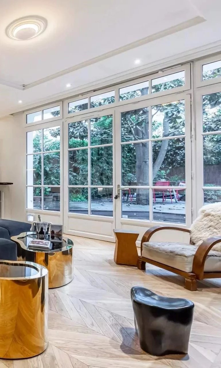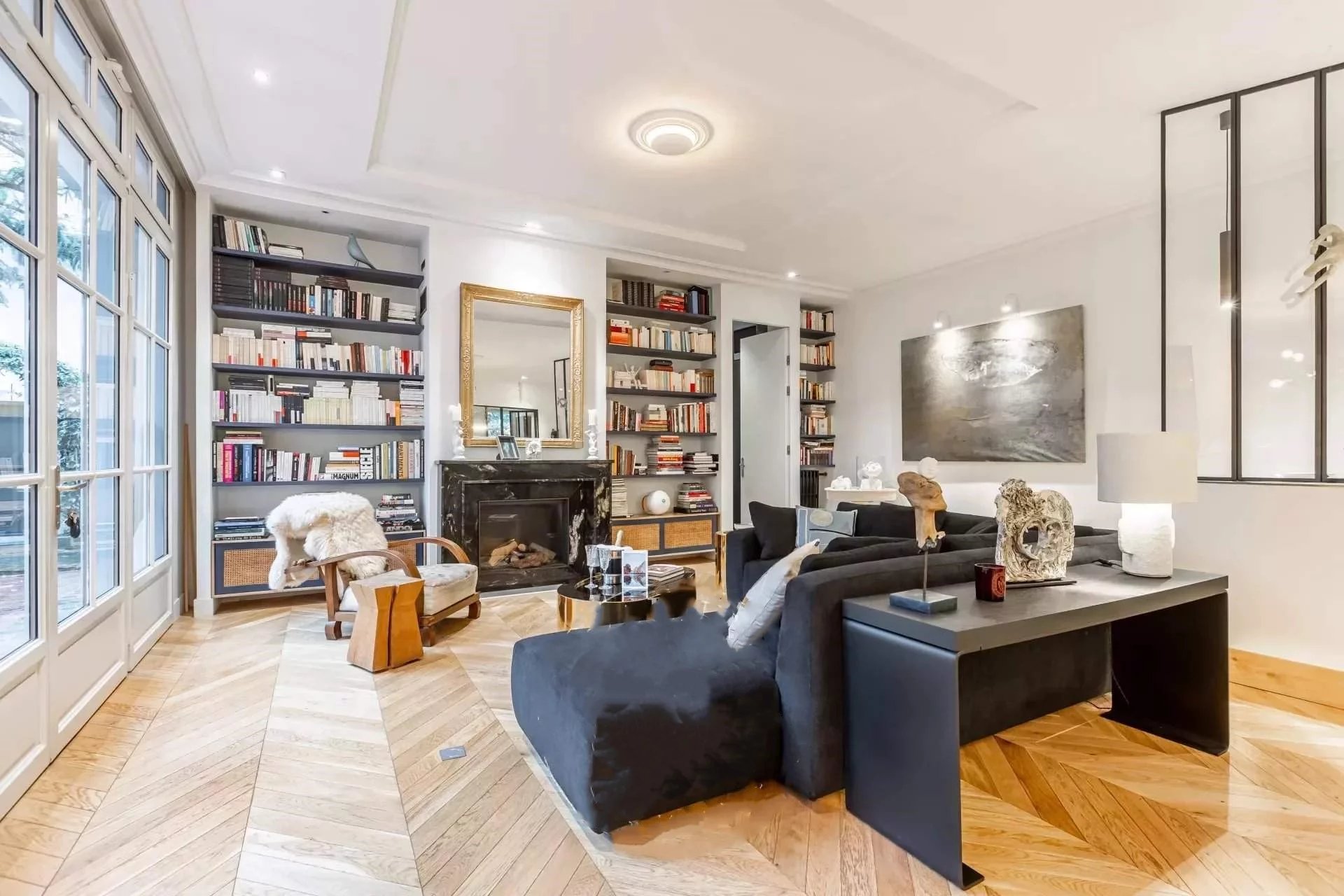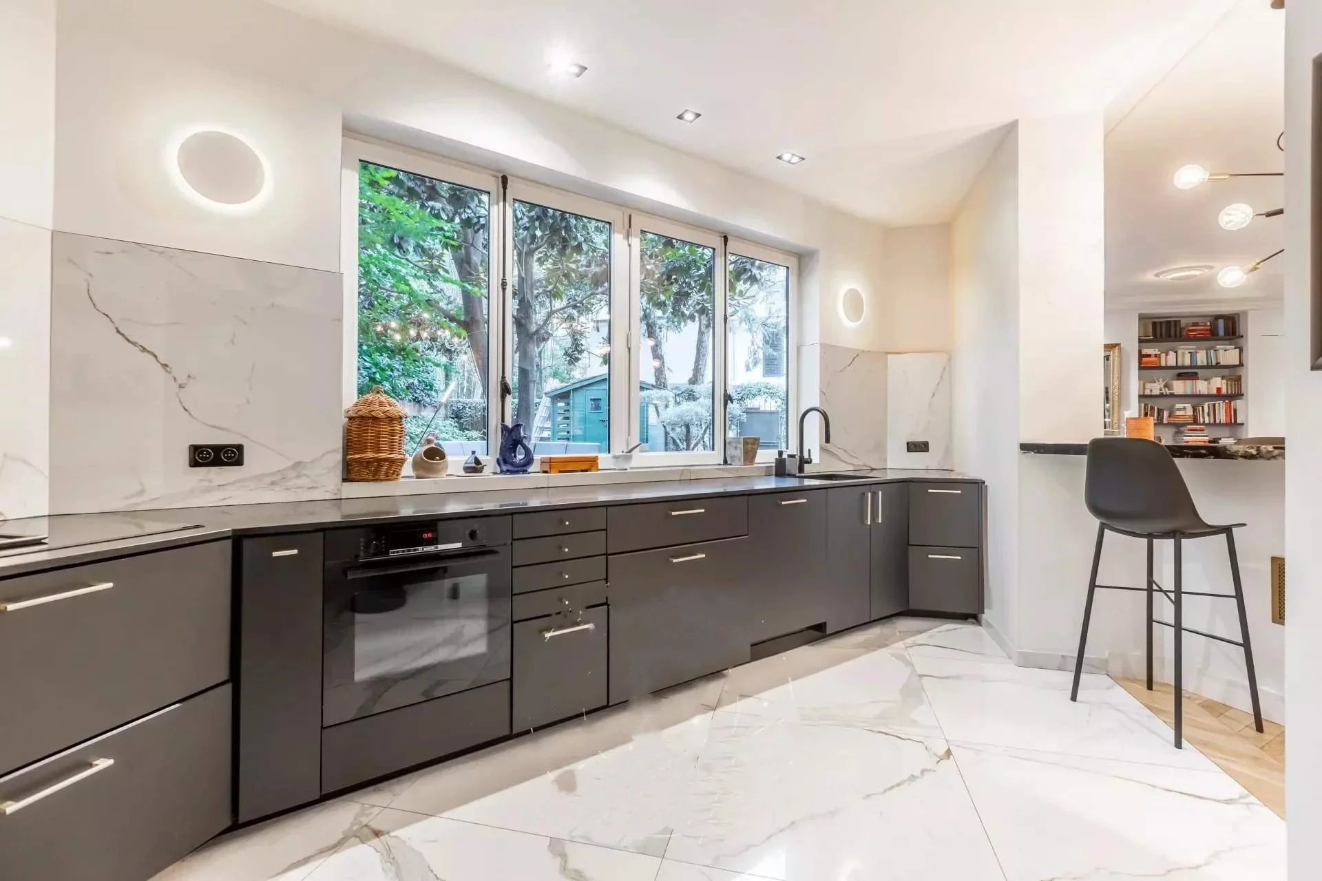 Entièrement rénové, l’appartement offre en rez-de-jardin, un très bel espace de vie séjour/cuisine de 78 m² prolongé par une grande terrasse-jardin d’environ 110 m². Le RDJ offre également un dressing invité, toilettes invités, 2 chambres dont l’une en suite avec sa salle d’eau et toilettes.
