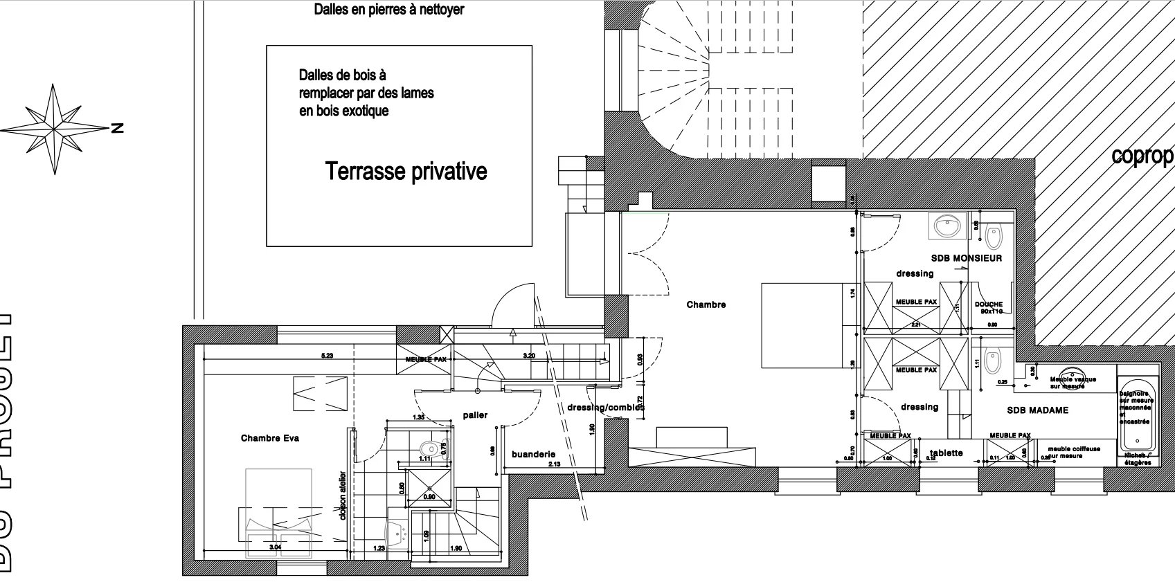 A l’étage, une première chambre en suite avec sa salle d’eau et toilette, une lingerie, une chambre de maitre avec accès direct à la terrasse d’environ 50 m² du R+1, 2 salles d’eau et wc, dressing, bureau complète l’ensemble.