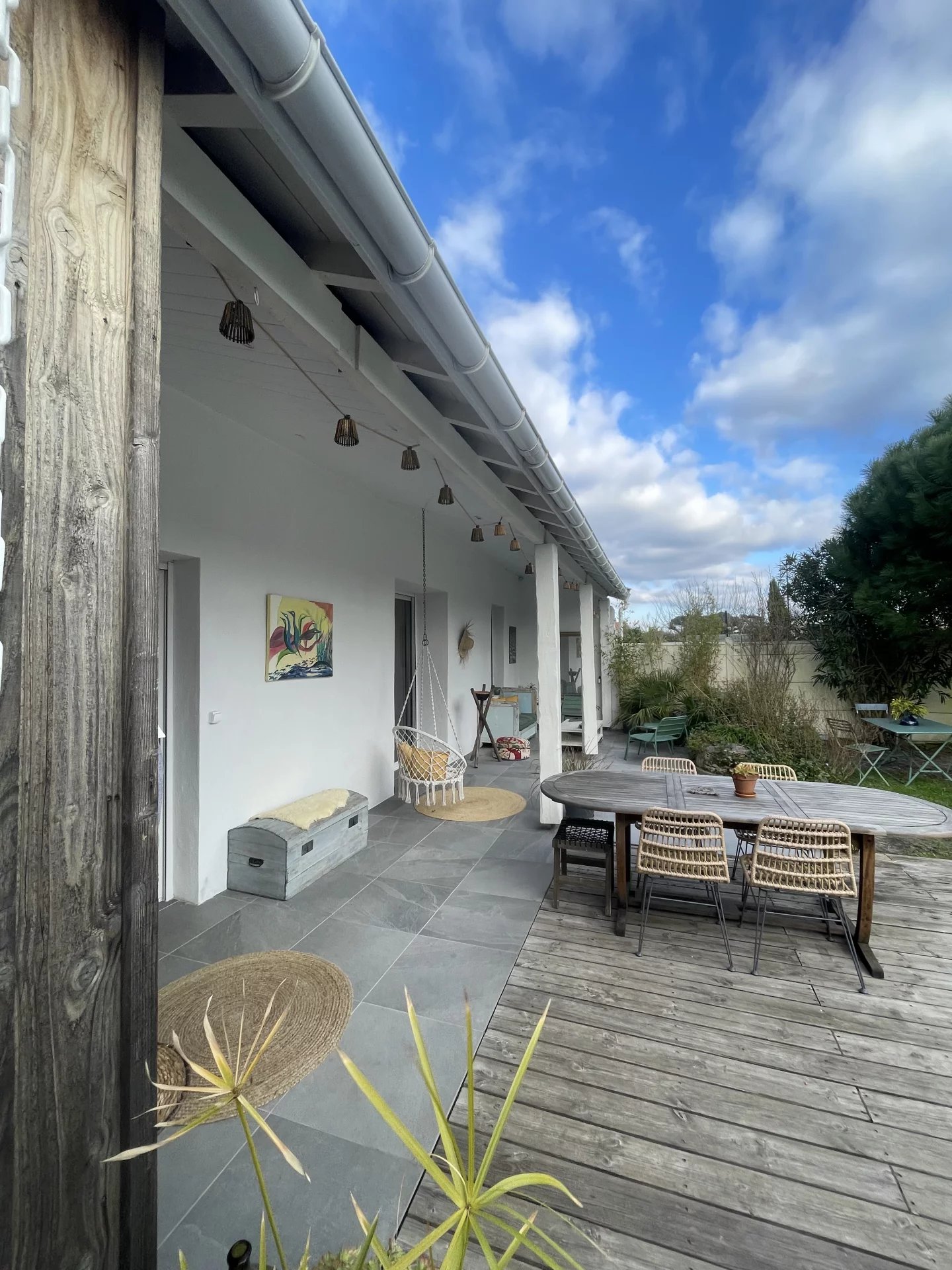 Coup de coeur assuré pour cette charmante et lumineuse longère de plain-pied exposée Sud sans-vis-à-vis, entièrement rénovée et en parfait état. Idéalement située à proximité du centre de La Teste-de-Buch, de la plage de la Hume, à 8mn des plages du Pyla, d'Arcachon et son golf.