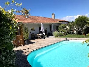 - Ses airs de vacances avec son ravissant jardin arboré de 446m² calme et sans-vis-vis, sa jolie piscine chauffée au brome, ses grandes terrasses, sa cuisine/bar d'été...