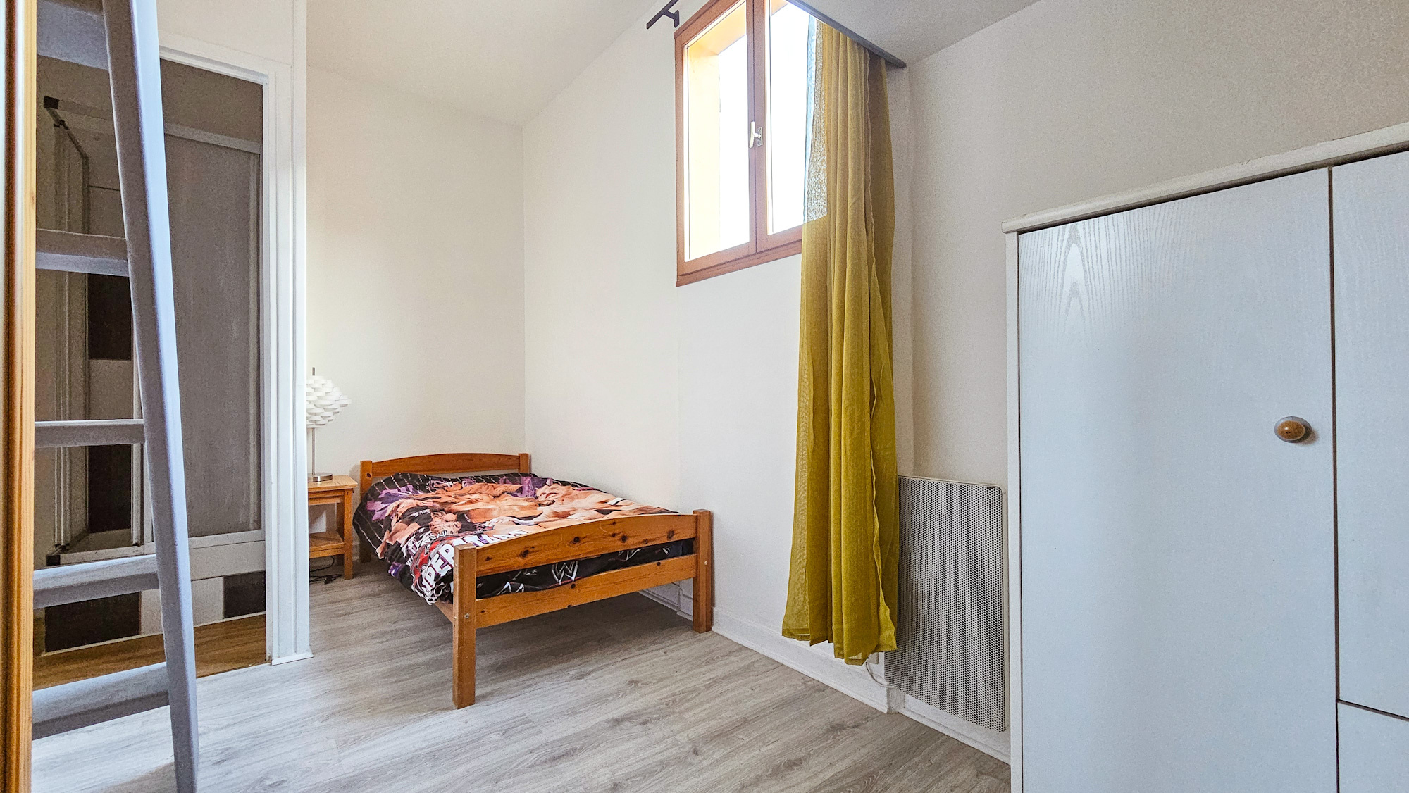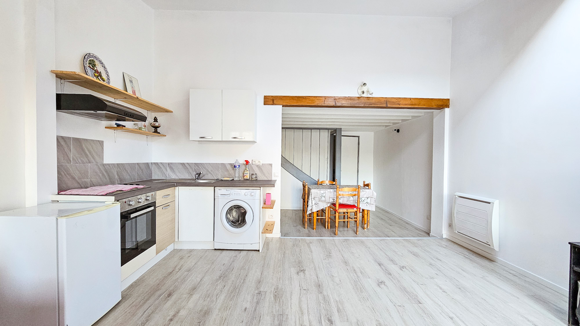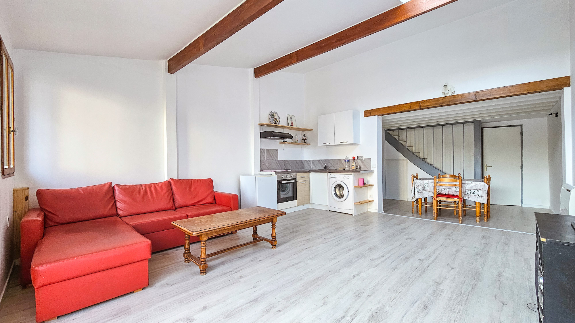 Une entrée, un spacieux séjour donnant sur sa terrasse et son jardin, une cuisine aménagée et équipée ouverte, une chambre et un WC.