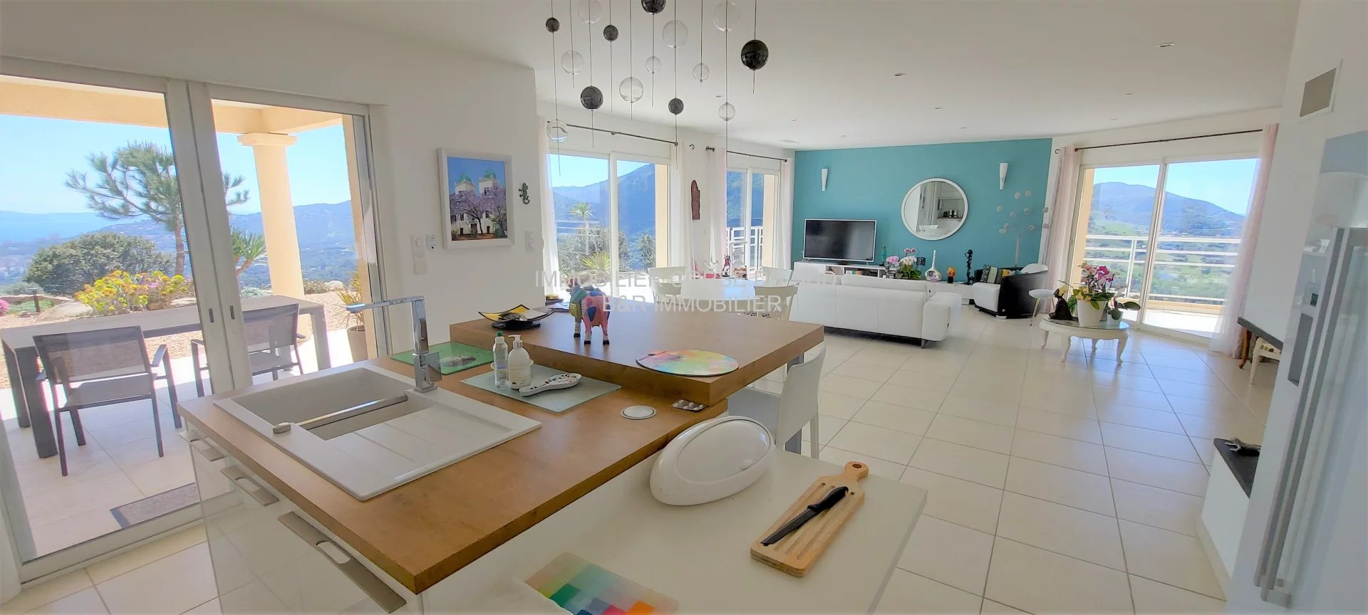 Depuis pratiquement toutes les pièces cette superbe villa offre des vues magiques sur la mer et les montagnes à 180° avec un ensoleillement +++ toute l'année suivi de magnifiques couchers de soleil.