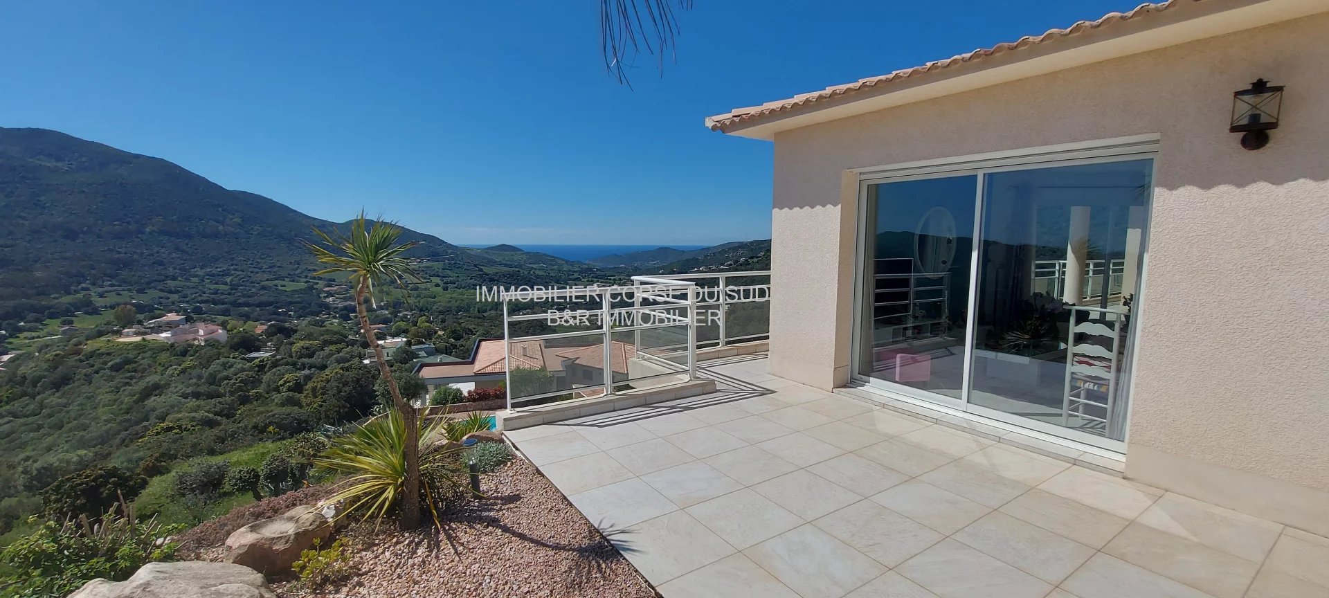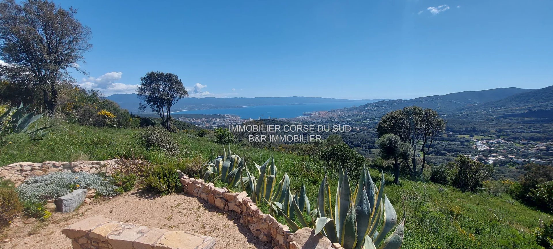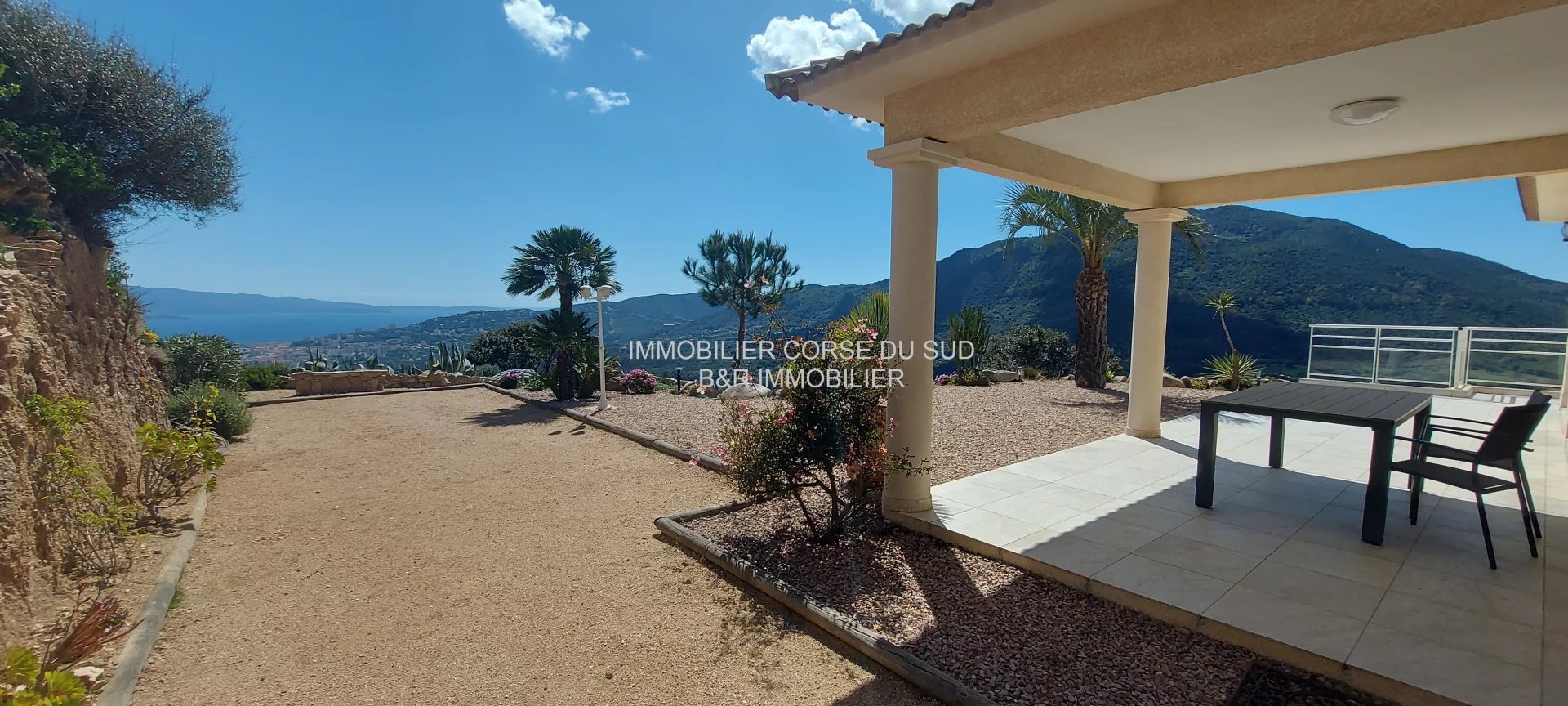 Villa édifiée sur les hauteurs d'Ajaccio, son emplacement est dominant avec une double vue mer panoramique et imprenable : sur le Golfe d'AJACCIO et le Golfe de LAVA.