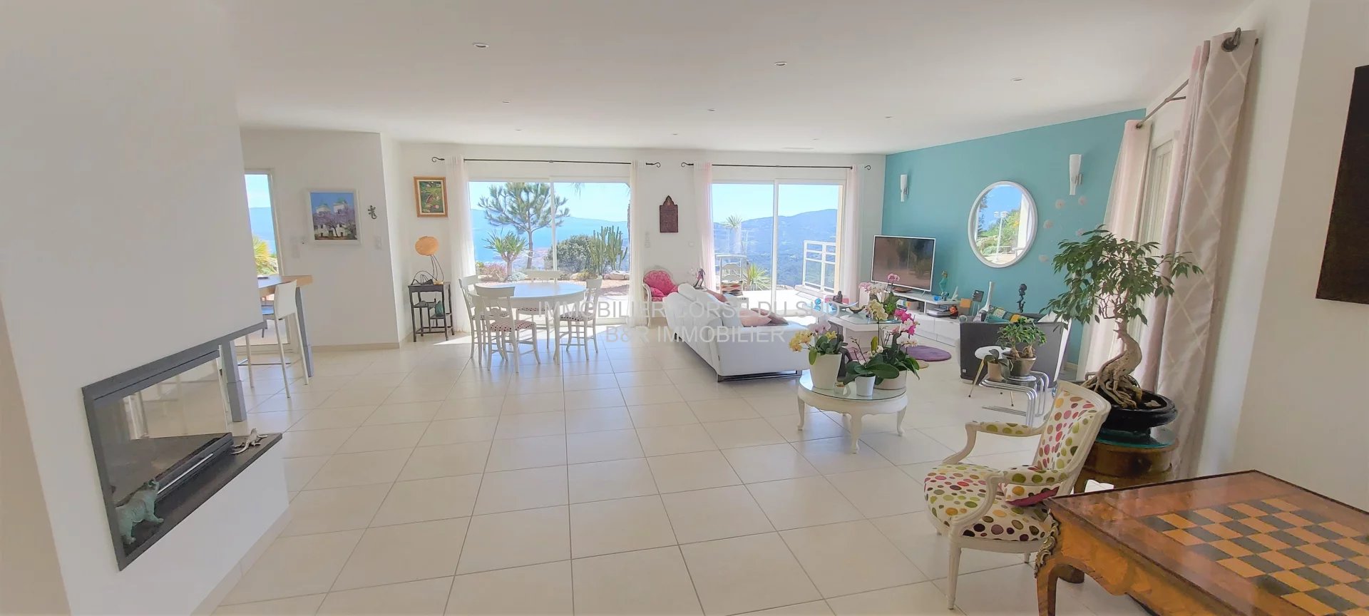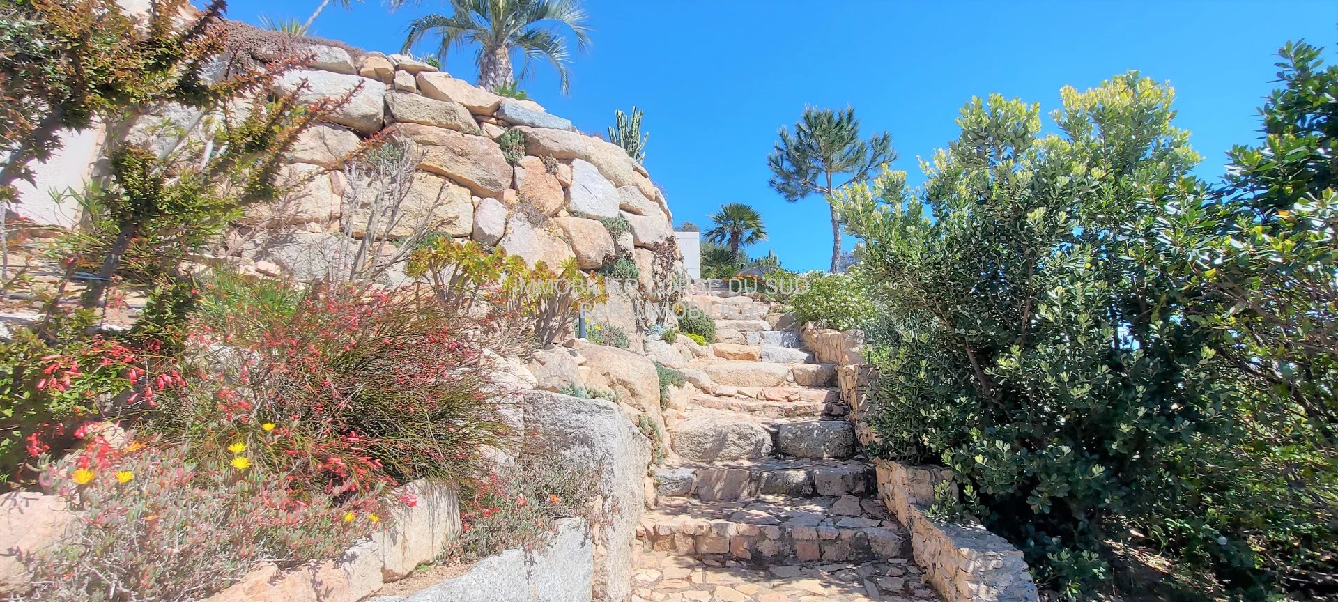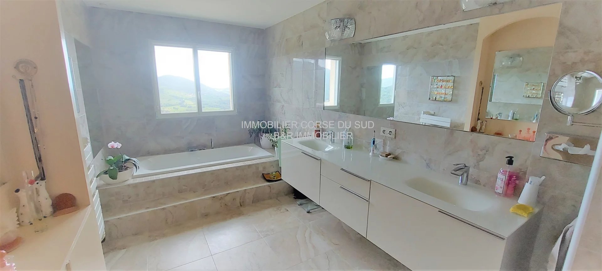Villa édifiée sur les hauteurs d'Ajaccio, son emplacement est dominant avec une double vue mer panoramique et imprenable : sur le Golfe d'AJACCIO et le Golfe de LAVA.