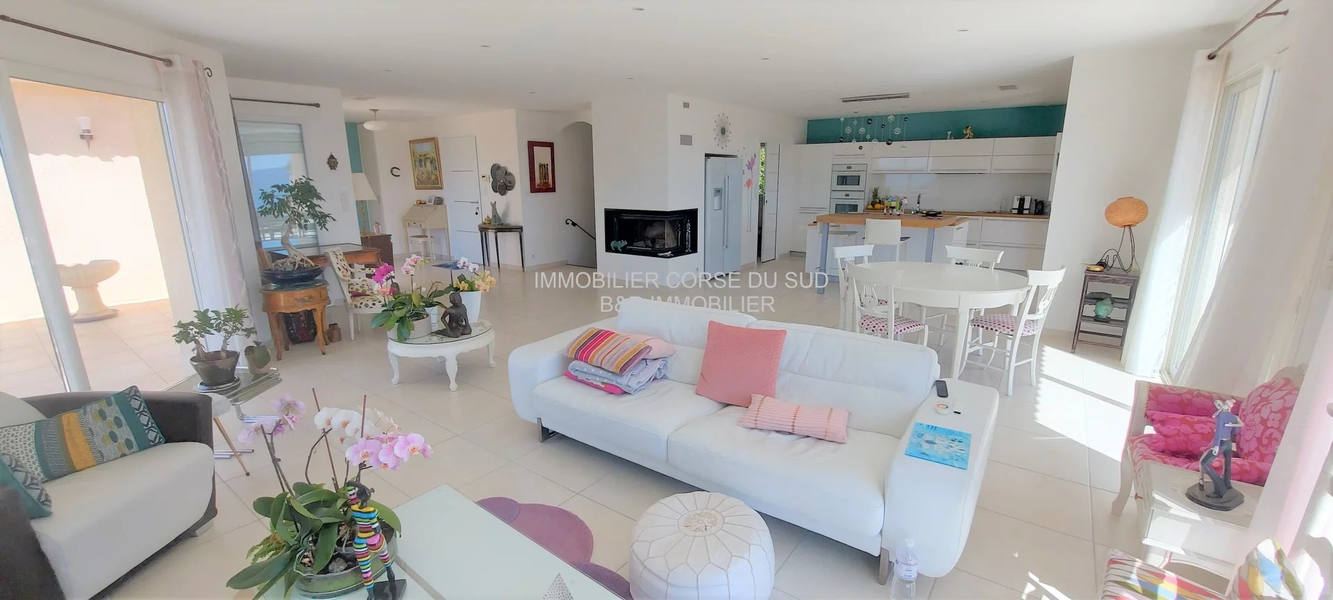 Belles prestations : Baies coulissantes aluminium en double vitrage; volets roulants électriques; climatisation; belle cheminée insert design; ravissante cuisine équipée avec îlot central; ; stores bannes; terrasses; porte de garage sectionnelle; Extérieur : jardin avec arrosage automatique; terrain pétanque à côté de la terrasse principale; superbe piscine traditionnelle avec son espace pool house face au Golfe d’Ajaccio.