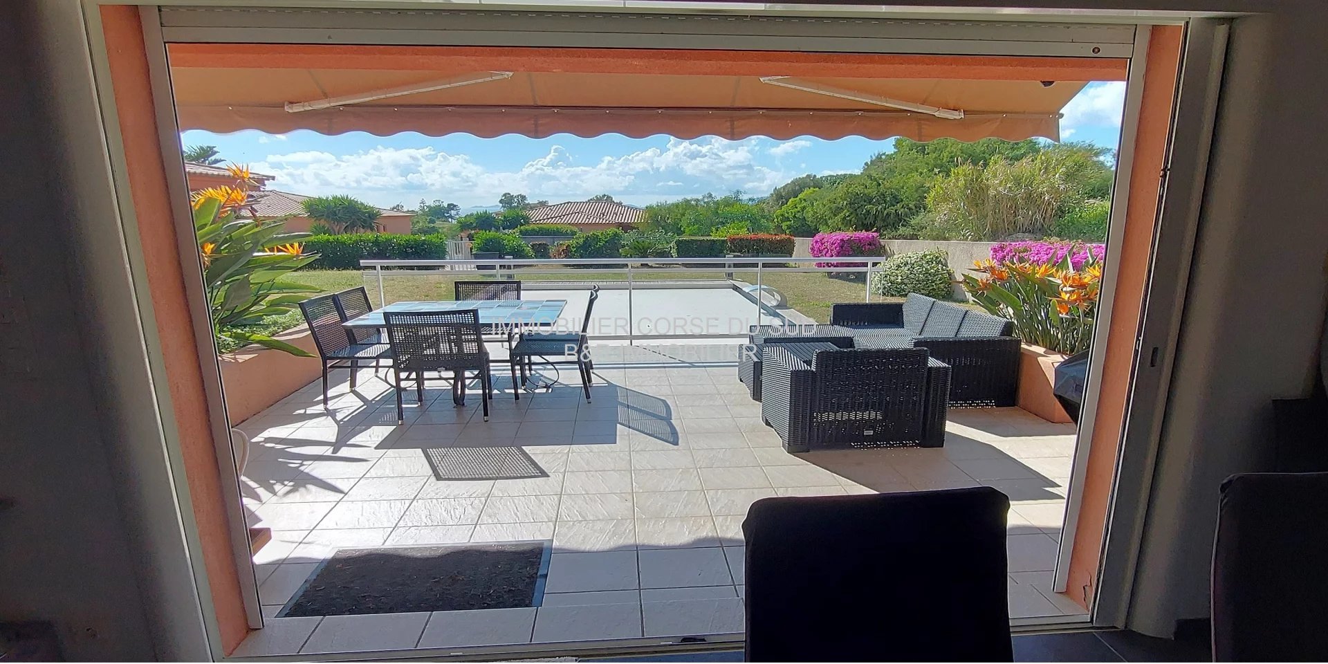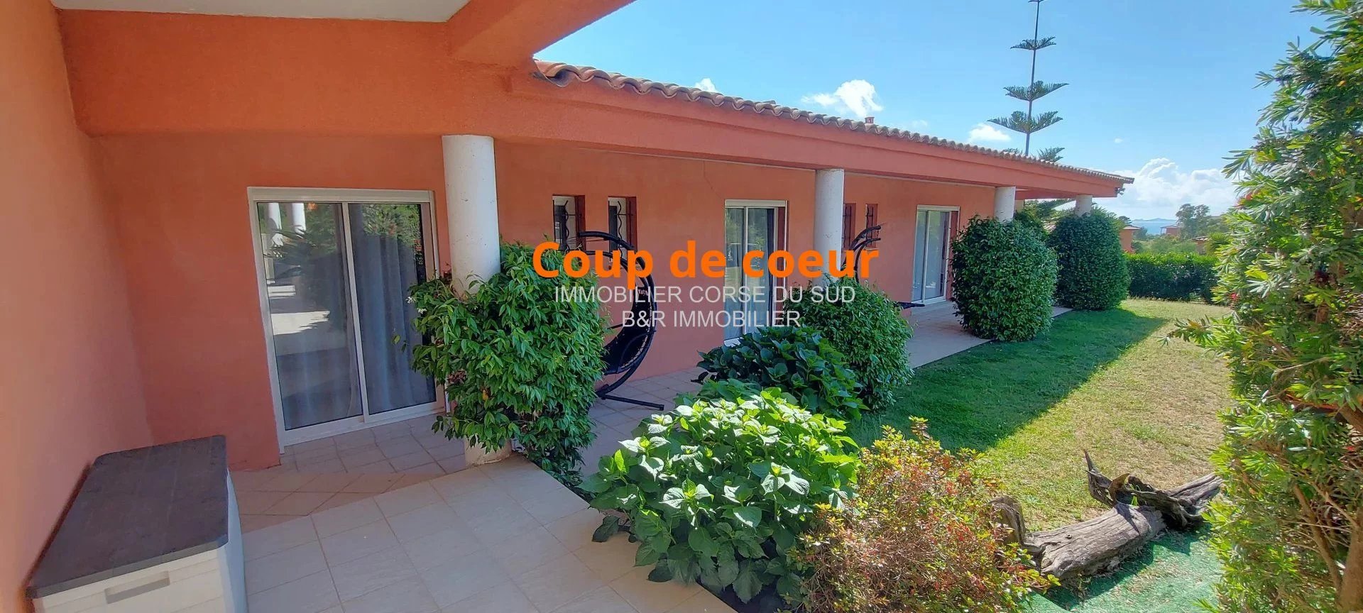 Pour un ensoleillement maximum la villa est exposée Ouest, depuis la terrasse un bel aperçu mer sur les îles Sanguinaires.