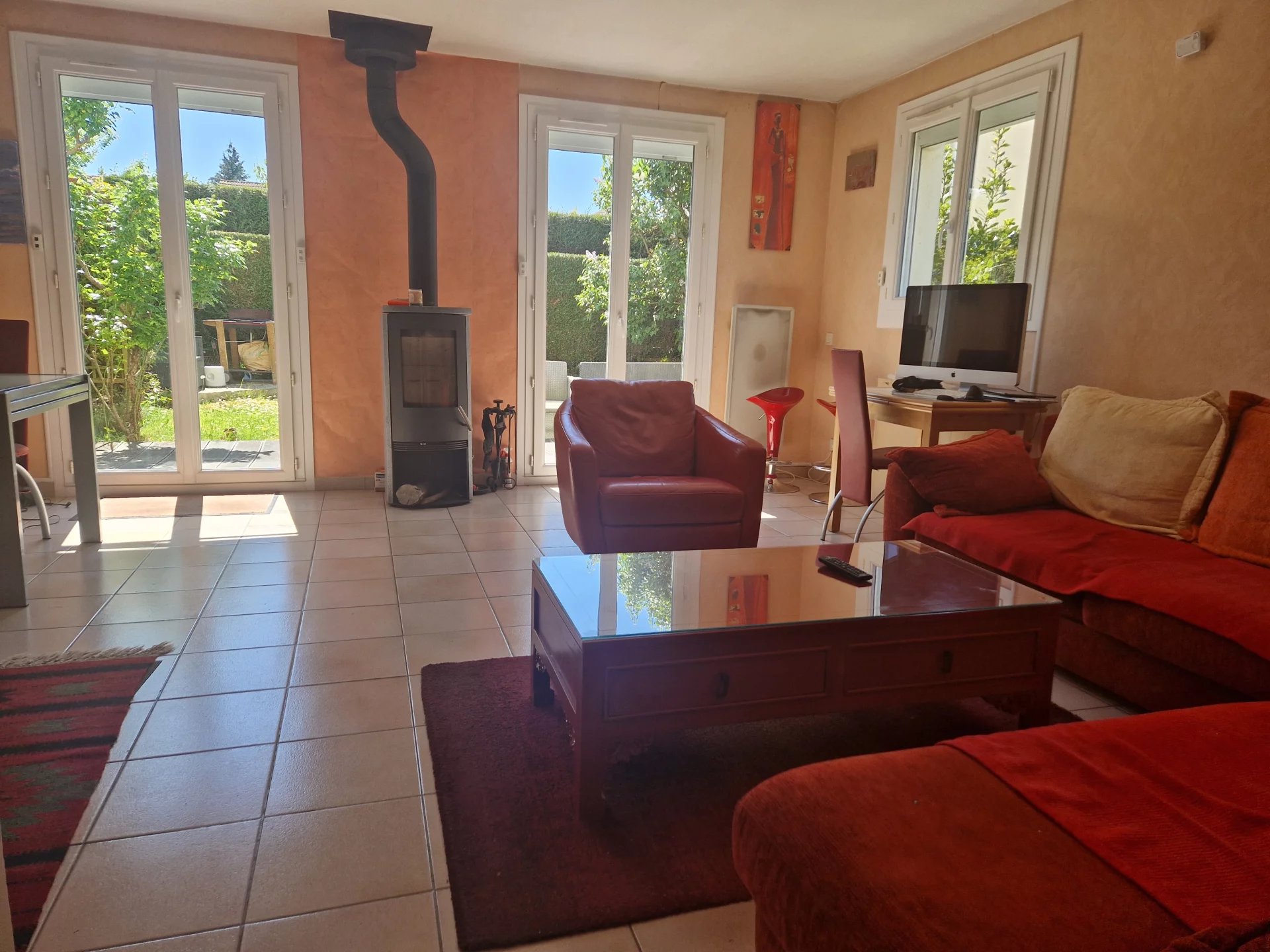 CENTRE VILLAGE. Au calme absolu, ravissante maison INDIVIDUELLE de 88 m² habitables bénéficiant d'un jardin SANS-A-VIS exposé sud-ouest, comprenant au RDC: entrée, séjour lumineux avec poêle à bois, cuisine aménagée/équipée, cellier.