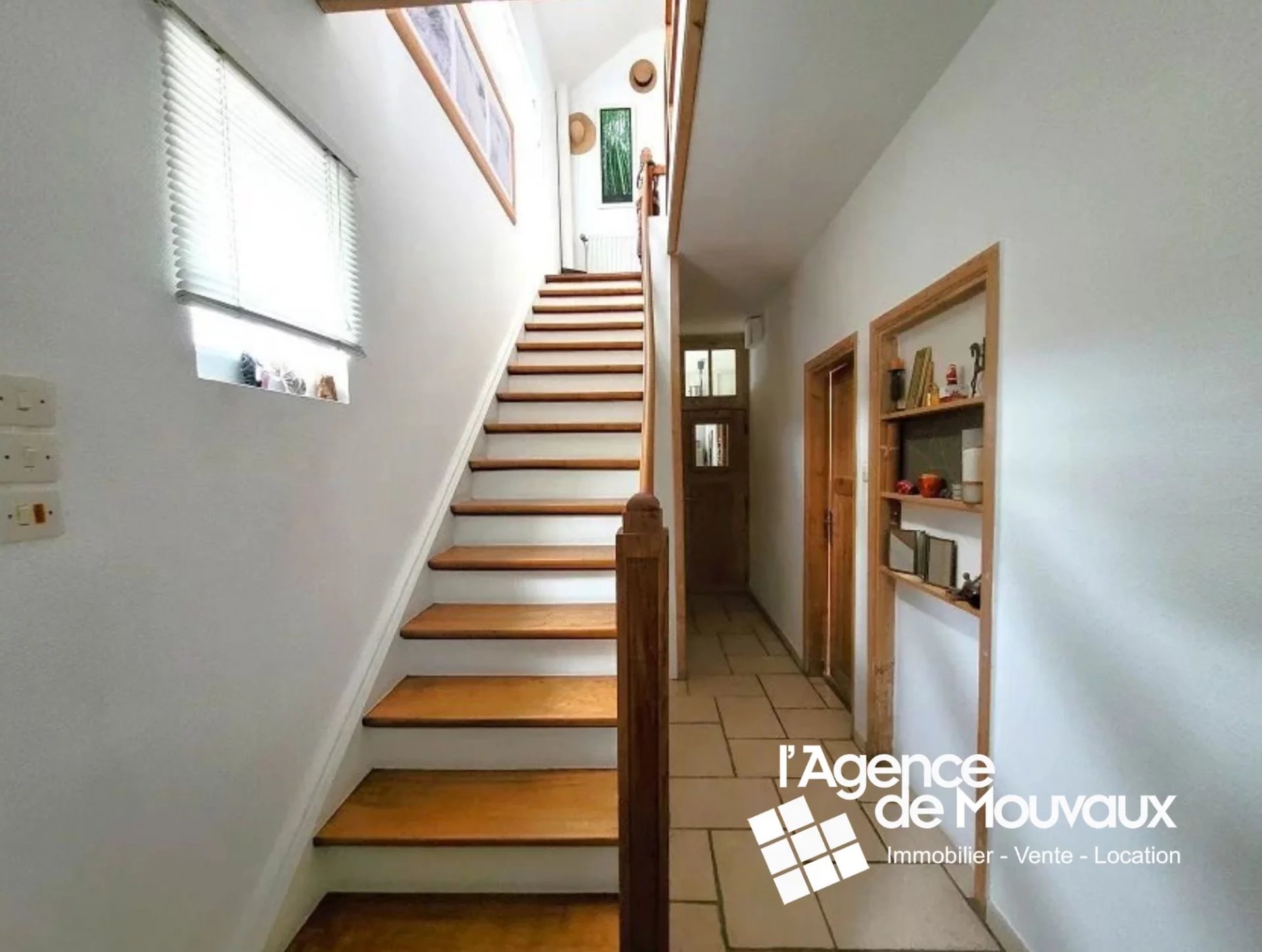 Elle se compose d'un vaste hall d'entrée avec wc séparés, une belle pièce de vie avec parquet baignée de lumière, une cuisine meublée et équipée, le tout donnant sur un magnifique jardin arboré exposé plein sud pour profiter pleinement du soleil.