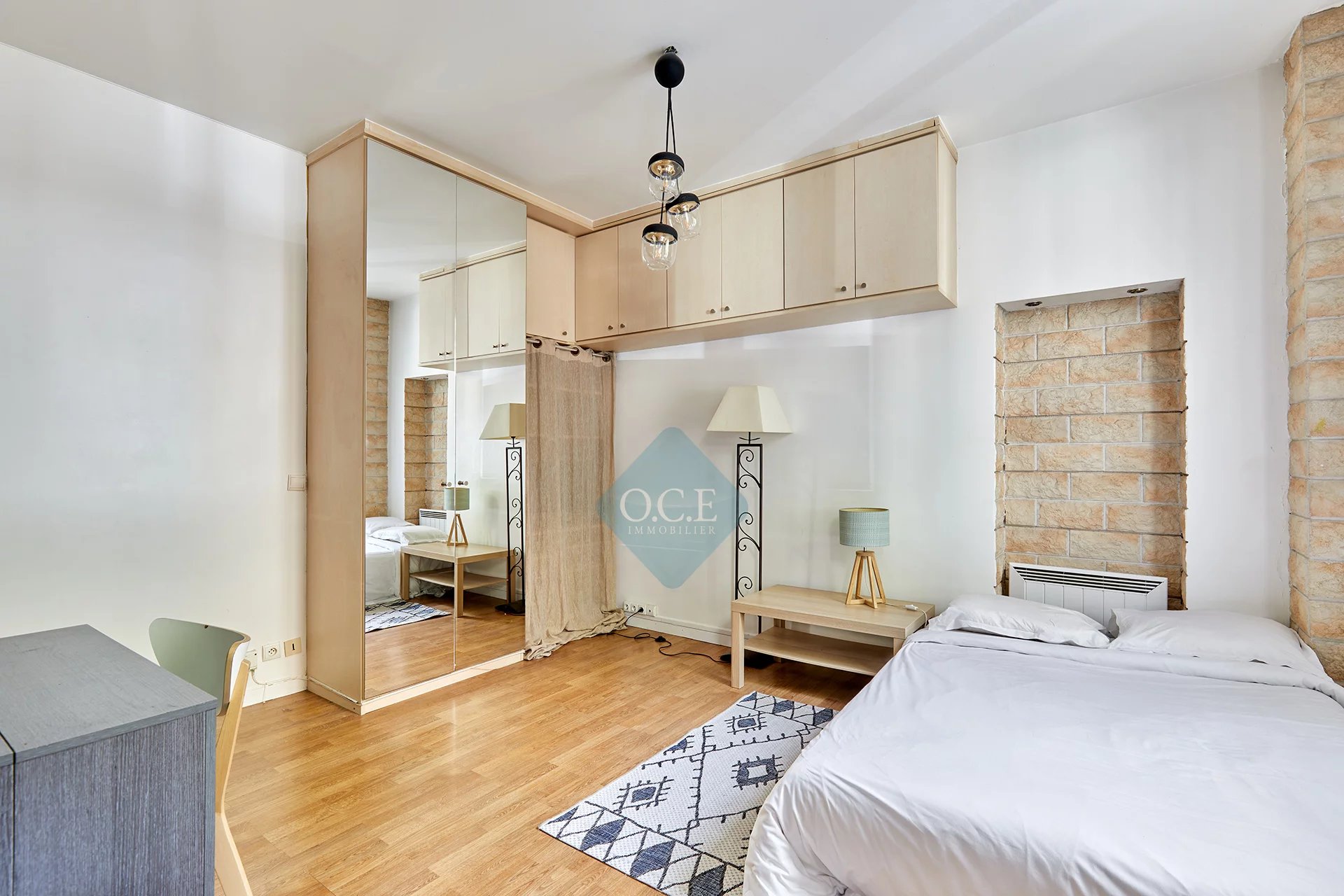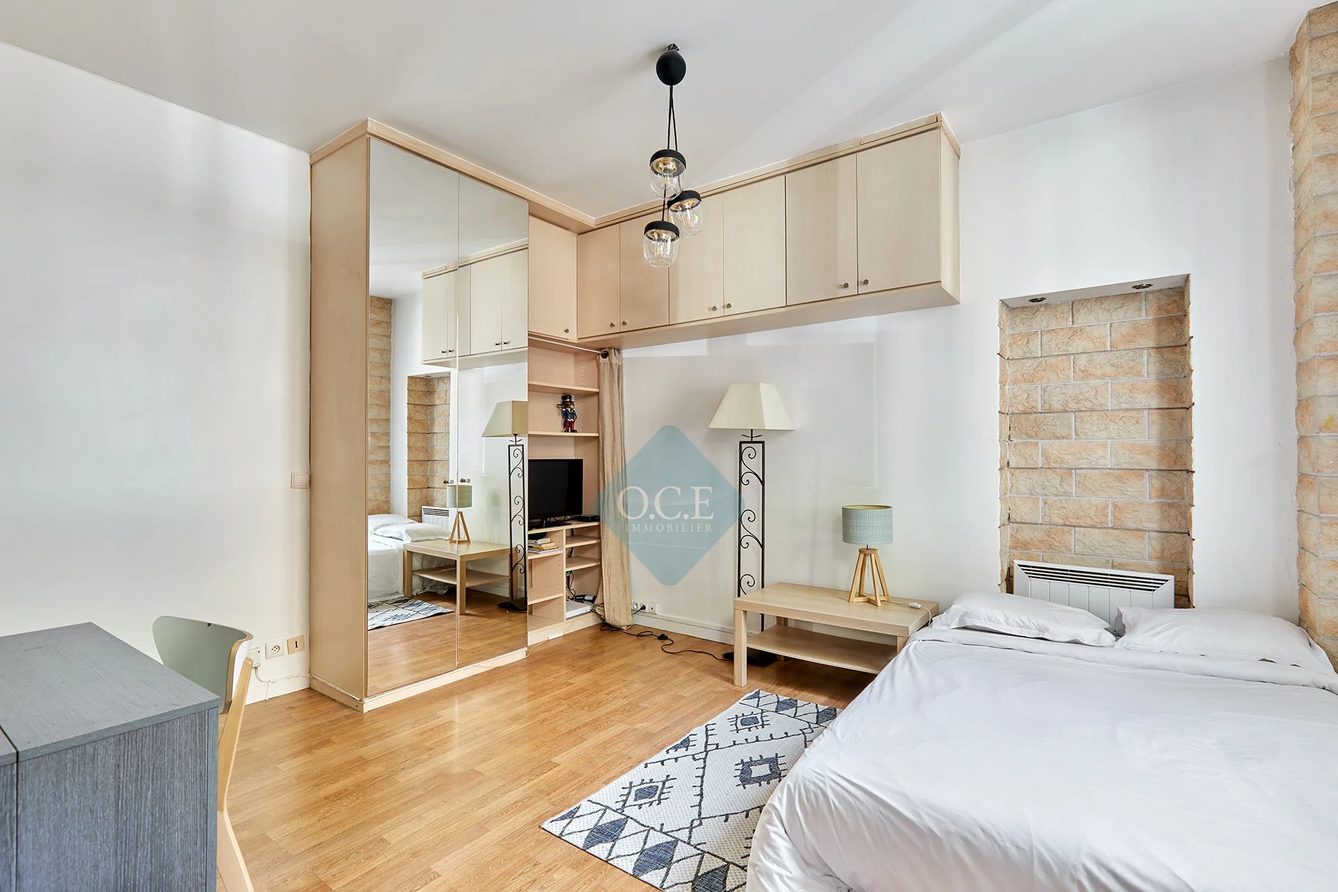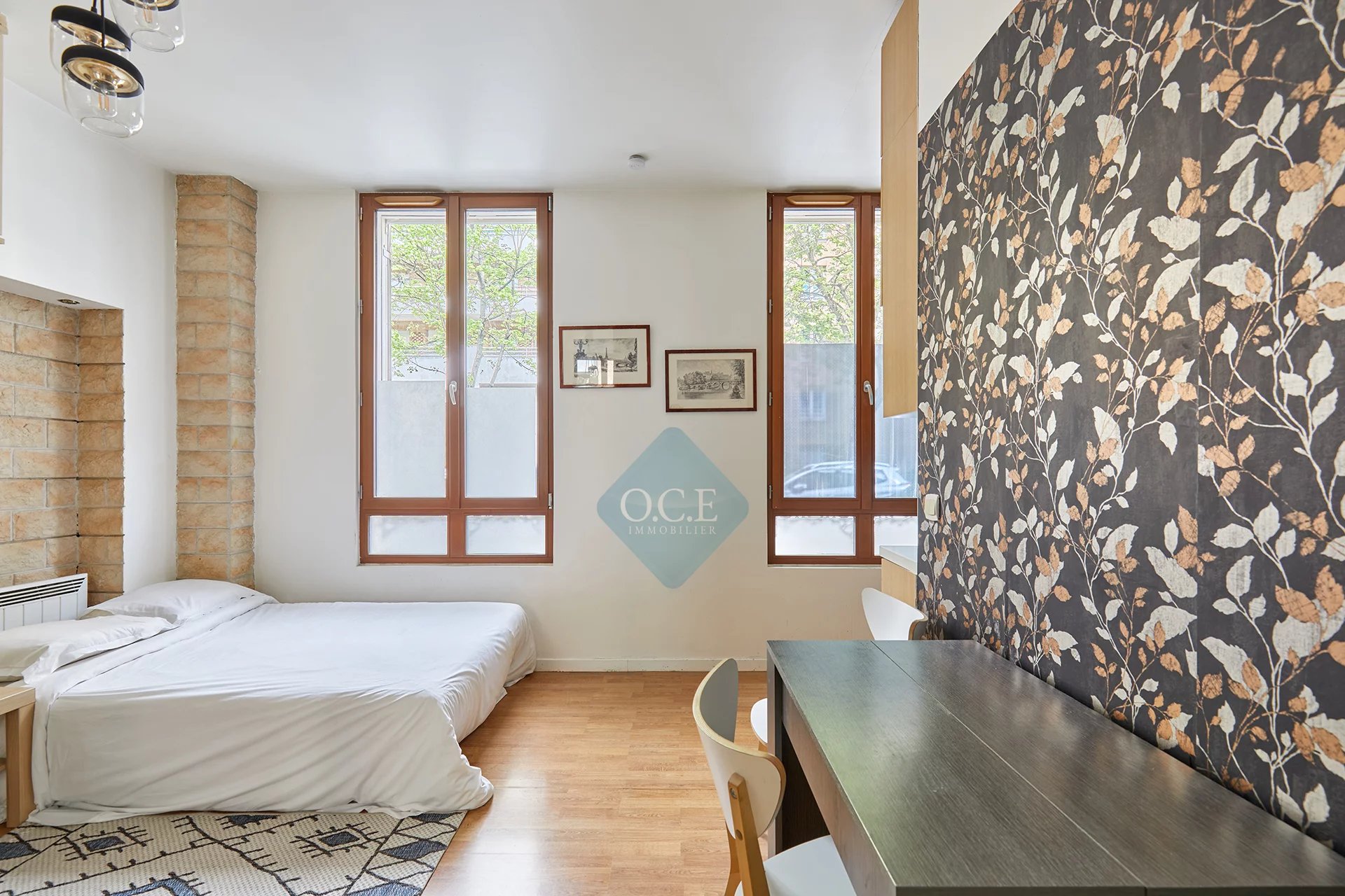 Magnifique studio vendu entièrement équipé. À deux pas des transports et des commerces, ce superbe studio séduit par sa belle hauteur sous plafond et son agencement optimisé. Il offre un espace de vie lumineux, un coin cuisine aménagé et équipé, des très grands placards de rangement et une salle de bain moderne avec douche et lave-linge.