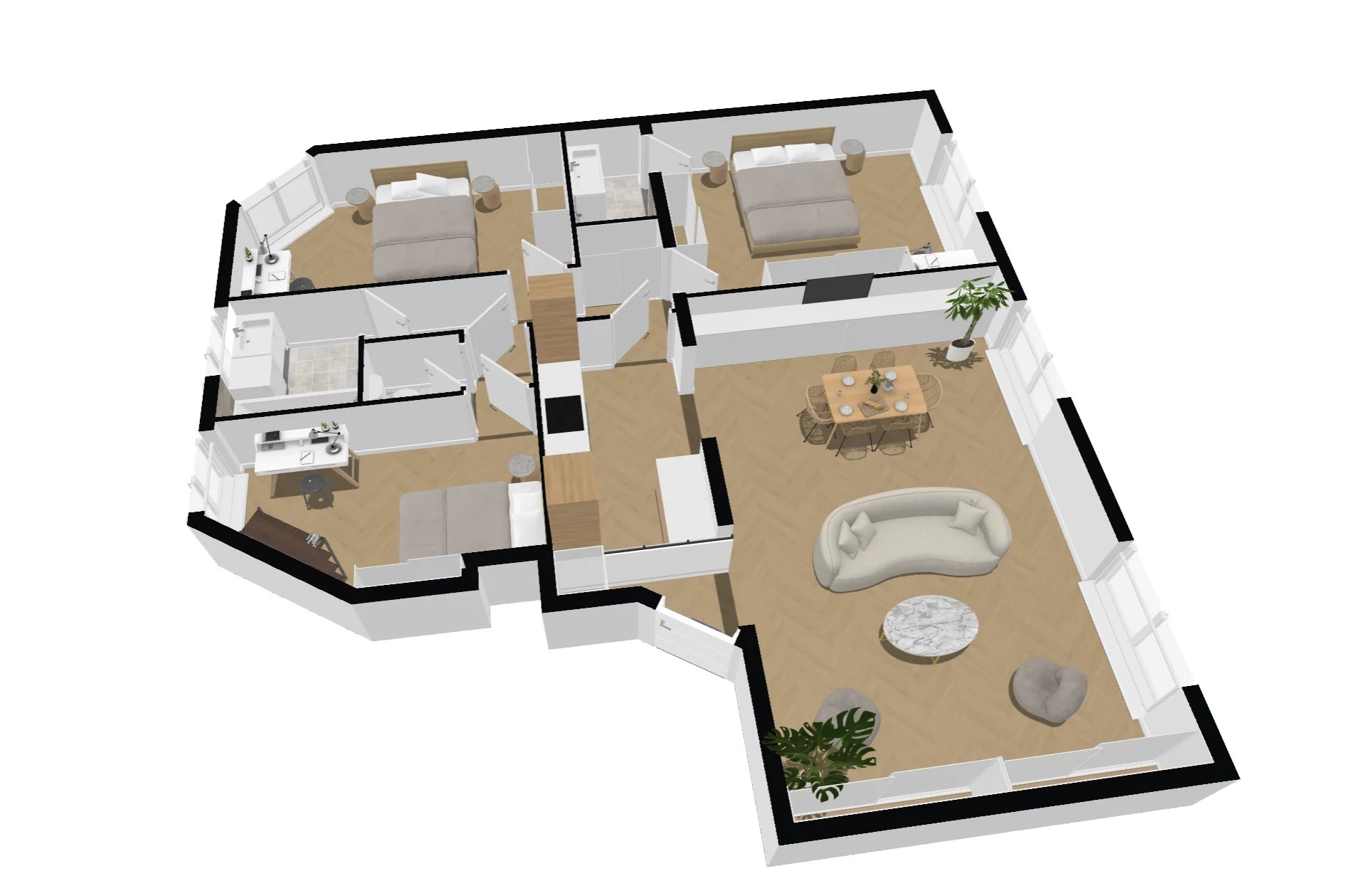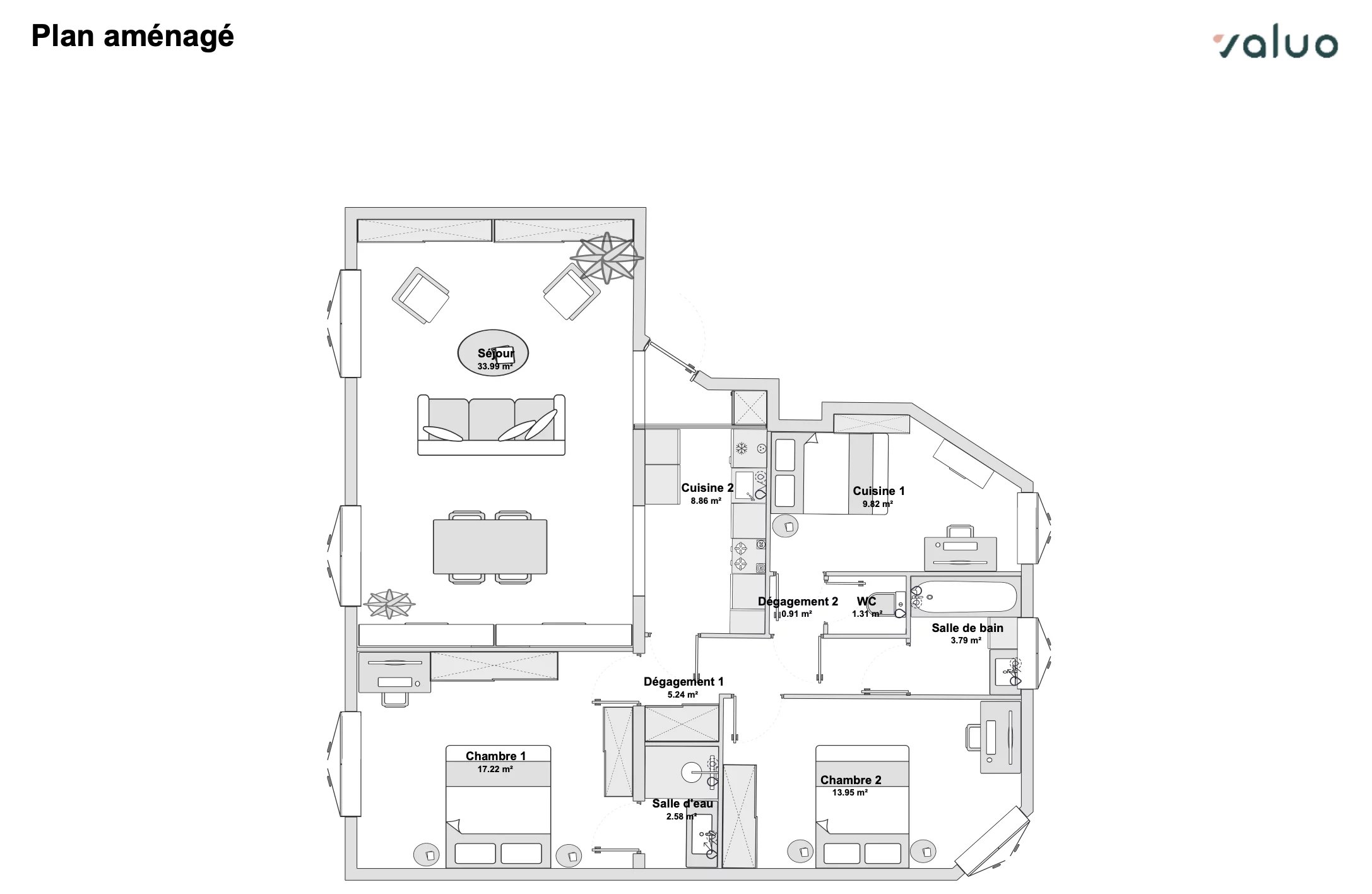 - Une troisième chambre (à créer à la place de l'actuel cuisine) de 10m2.