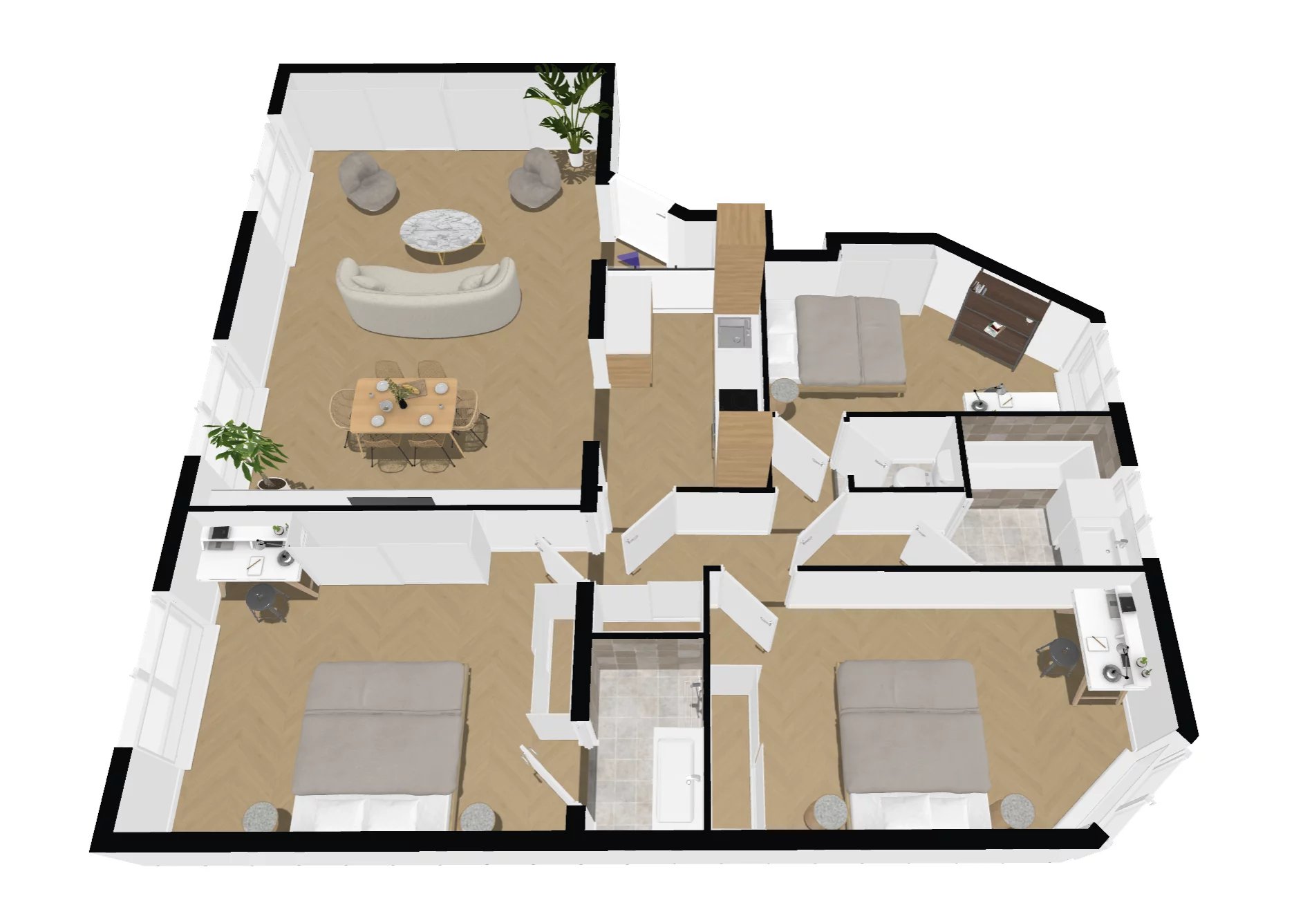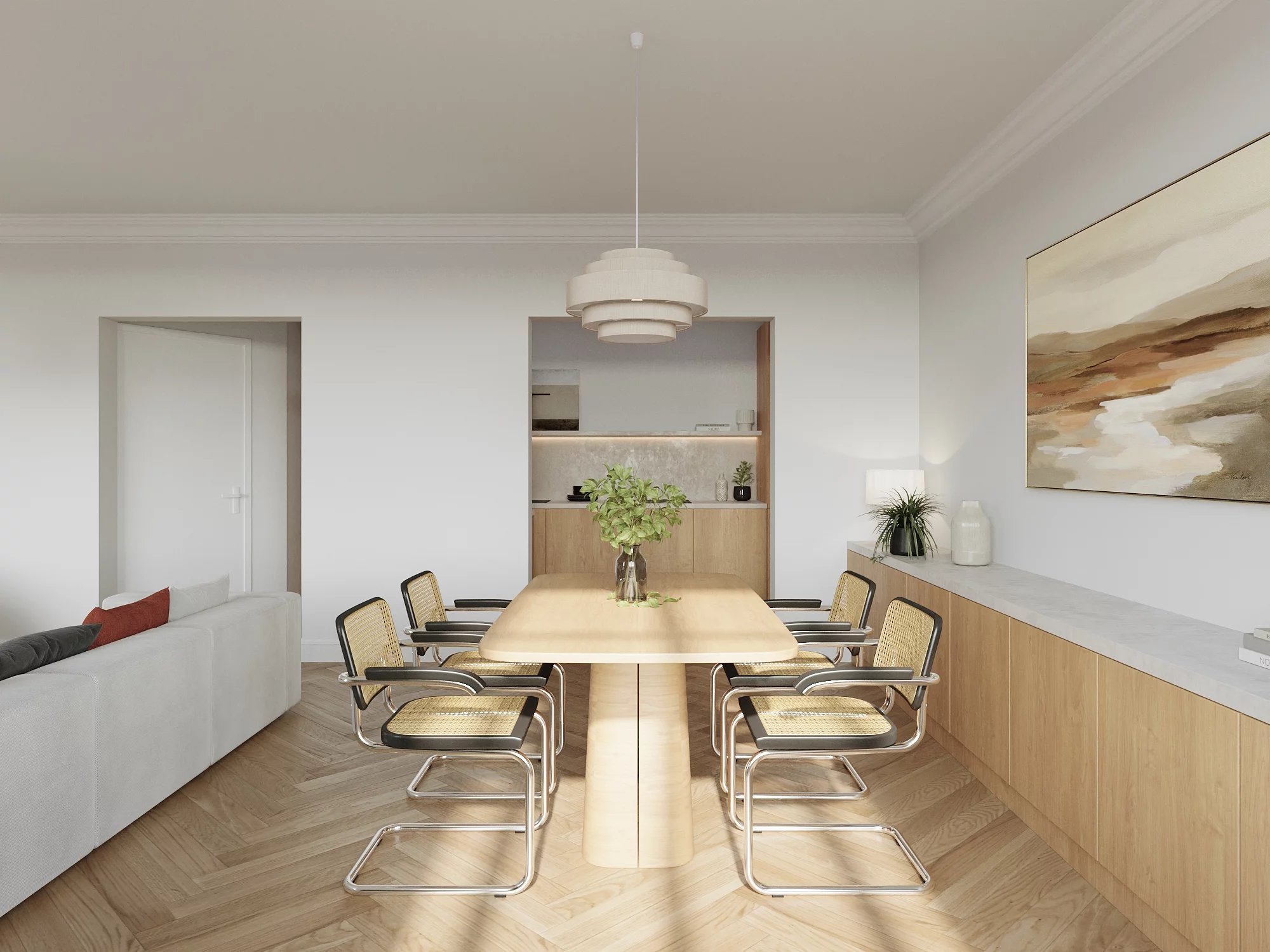 L'appartement est à rénover et optimiser avec la possibilité de créer un séjour avec une cuisine semi-ouverte de 43m2 et une troisième chambre (actuellement configuré en une chambre).