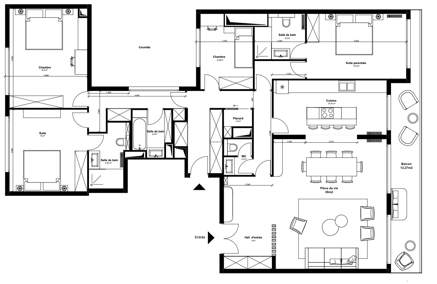 Nous sommes ravis de vous présenter ce superbe appartement T5 de 155m² très bien optimisé avec une grande pièce de vie de 60m2 donnant accès à un balcon de 12m2. Situé idéalement dans le 16ème arrondissement à deux pas de Janson de Sailly, à 5 mins de la place Victor Hugo et à proximité de ses commerces et de ses restaurants. L'appartement est à rénover. En effet, Valuo est le spécialiste de la vente d’appartement à rénover avec un accompagnement clé en main sur les travaux. Le bien a été repensé par notre architecte, ainsi vous bénéficiez du dossier complet : plans optimisés, projections 3D, devis travaux détaillé (budget travaux en plus du prix de vente). L'Appartement : -Très lumineux orienté sud, une grande pièce de vie de 60m2 jouissant de 3 grandes baies vitrées avec un accès au balcon de 12m2. Balcon filant sur toute la pièce de vie. -Deux grandes suites avec dressing intégré et salle de bain dont une donnant sur le jardin intérieur et une ayant accès au balcon. -Deux autres belles chambres avec rangement. -Une autre salle de bain avec baignoire et un WC invité/indépendant. -Situé au 3éme étage avec ascenseur. -place de parking dans la résidence disponible en sus. La résidence : -Résidence construite dans les années 1970, bien entretenue, aucun travaux à prévoir. -DPE E proche D. Emplacement : -Proximité immédiate de tous les commerces (Monoprix, Casino et Franprix à 5mins) -A proximité des lycées / écoles / collèges. Accessibilité : -A 7 mins de la station Victor Hugo (M2), à 5mins de la station rue de la pompe (M9) et à 8 mins de Trocadéro (M9/M6).