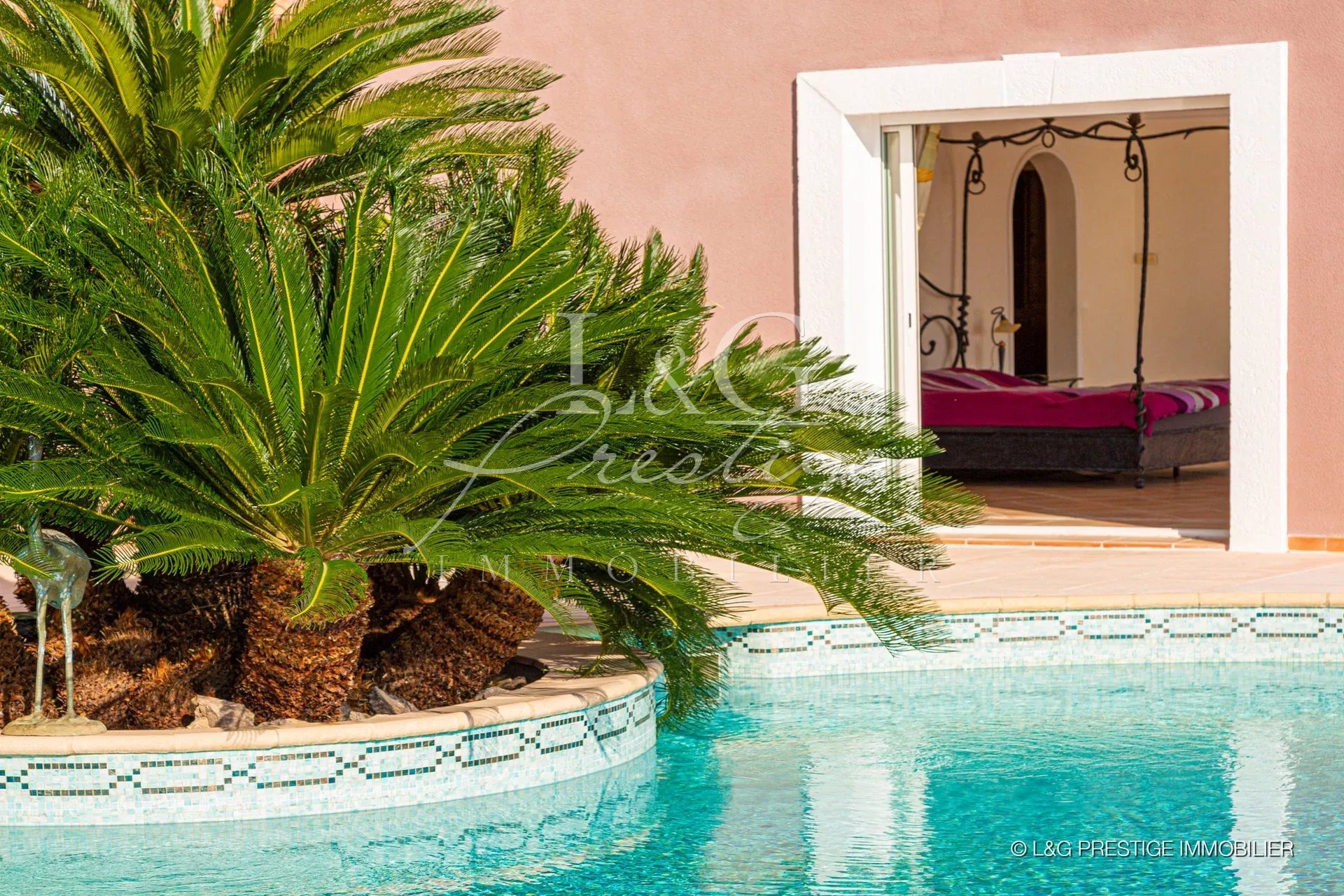 Votre agence LG Prestige Immobilier de Théoule-sur-Mer vous propose de découvrir ce bien haut de gamme : Majestueuse propriété dans le secteur ultra exclusif de la Pointe de l’Aiguille bordant le parc Naturel de l’Estérel. Surplombant un panorama extraordinaire, cette villa néo-provençale bénéficie de prestations raffinées et totalise 340m² habitables dont 280m² de plain-pied. Elle offre un vaste séjour de 115m² avec cheminée permettant de recevoir agréablement vos invités, 5 chambres avec vue mer, une cuisine équipée et une somptueuse cave à vin. S’ajoutent à cela 130m² d’annexes, pièces de services, studio indépendant, grand garage pour 4 Véhicules, 2 stationnements extérieurs couverts. Côté jardin vous profiterez avec plaisir du calme, de terrasses ensoleillées, d’un espace pétanque, d’une superbe piscine au sel qui borde un confortable pool-house équipé et d’une surface gazonnée avec Hamac. Le tout dans un écrin de verdure, terrain entièrement paysagé. Vue Mer féerique sur la baie de Cannes et Iles de Lérins.