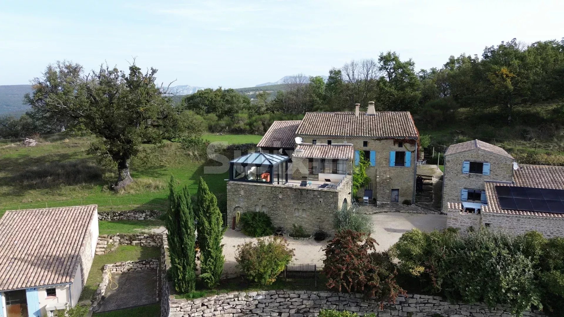 ref626ON : Située entre Montélimar et Dieulefit, cette propriété est posée dans un écrin de verdure. Profitant d'environ 9 ha d'un seul tenant de prairie et de bois, entièrement clôturés, ce bien convient parfaitement pour les amoureux de la nature, du calme, des vues imprenables ! La propriété permet l'accueil de plusieurs chevaux (boxes, sellerie, abreuvoirs automatiques répartis dans la propriété, ...) La maison vous propose 2 chambres avec salle de bain, une terrasse offrant une vue panoramique et un spacieux séjour. Une seconde maison dispose d'une chambre, séjour et cuisine. Un grand garage, un carport, 2 ateliers, une cave à vin.... De nombreux atouts vous invitant à programmer une visite.