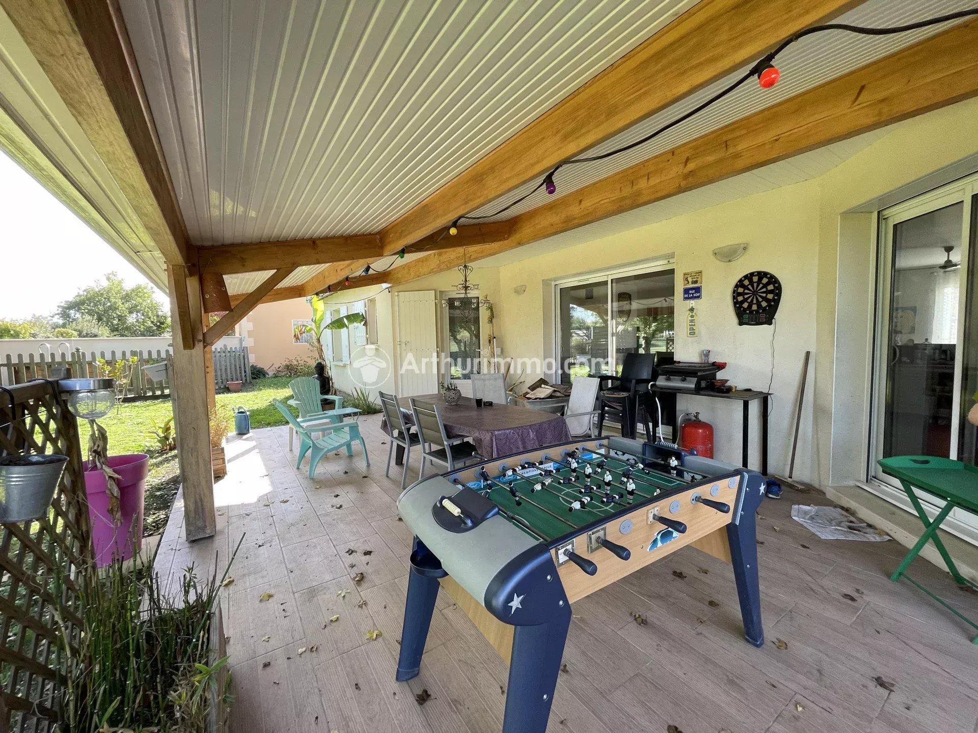 Je vous propose cette maison située dans une zone pavillonnaire en plein centre ville de Matha, à 2 minutes à pieds des commerces et écoles. Construite en 2006, cette maison d'une superficie habitable de 149 m2 comprend : un spacieux séjour traversant de plus de 50 m2 avec un insert à bois, une cuisine toute équipée avec bar, buanderie, un bureau. Viennent ensuite un WC, 5 chambres chacune avec placards et une salle de bains complète avec double vasque, baignoire d'angle et douche à l'italienne. Cette maison est entretenue et décorée avec goût, vous n'avez plus qu'à vous installer avec vos valises. Terrasse couverte sur l'arrière pour vos soirées d'été. Charmant terrain arboré sans vis à vis pour 600 m2 environ avec abri de jardin et voiture, cabane de jardin et piscine semi-enterrée (6x3m, 1m20 profondeur). EMPLACEMENT IDEAL ET RARE. Ouvertures en double vitrage alu. Système de chauffage central avec climatisation réversible dans toute la maison. Volets roulants électrique dans les pièces de vie. Maison raccordée au tout à l'égout. Pour visiter, contactez Eric au 06.14.41.47.24 ou eric.dardillat@matha-immo.com