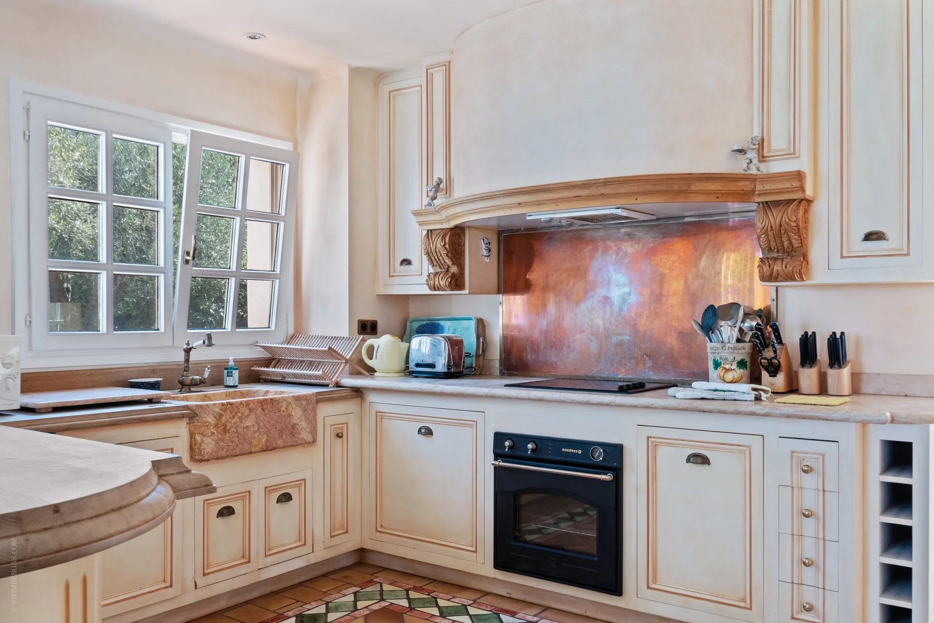 David Luxury Properties vous propose cette magnifique villa de type Provençale, située au coeur d'un domaine fermé et sécurisé avec gardien. La propriété comporte 2 maisons. La maison principale est réparti sur 193m2 et se compose comme suit: Une cuisine, avec salon/séjour et salle à manger, 2 chambres en suite avec salles de bain. Au niveau inférieur vous trouverez 2 autres chambres avec salles de douche ainsi qu'une seconde cuisine. 1 chambre pour le personnel, ainsi qu'une buanderie et un garage. La maison d'invité se compose d'une belle cuisine américaine, un salon/séjour, 2 chambres avec salles de douche. Le tout sur un grand terrain de 3404m2 avec piscine. Vous serez séduit par la décoration de type Italienne de cette propriété. Plusieurs stationnements.