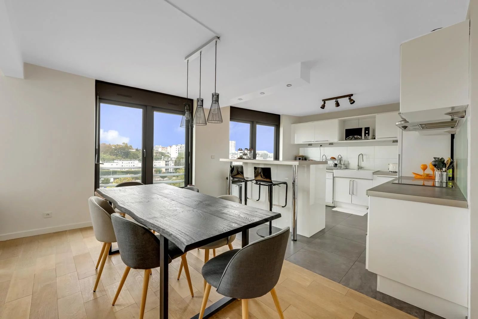 L'intérieur de l'appartement est élégant et contemporain. Les quatre pièces sont bien agencées, idéales pour une famille ou pour ceux qui recherchent espace et confort. Chaque pièce est aménagée avec soin, offrant un cadre de vie cosy.