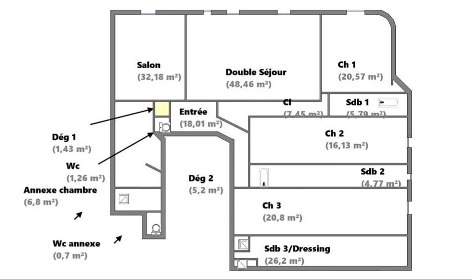 Cet appartement a conservé tous les éléments d'époque tels que le parquet en pointe de Hongrie, des cheminées en marbre, de magnifiques moulures et une très belle hauteur sous plafond de 3,25m qui lui confère une ambiance élégante et sophistiquée.