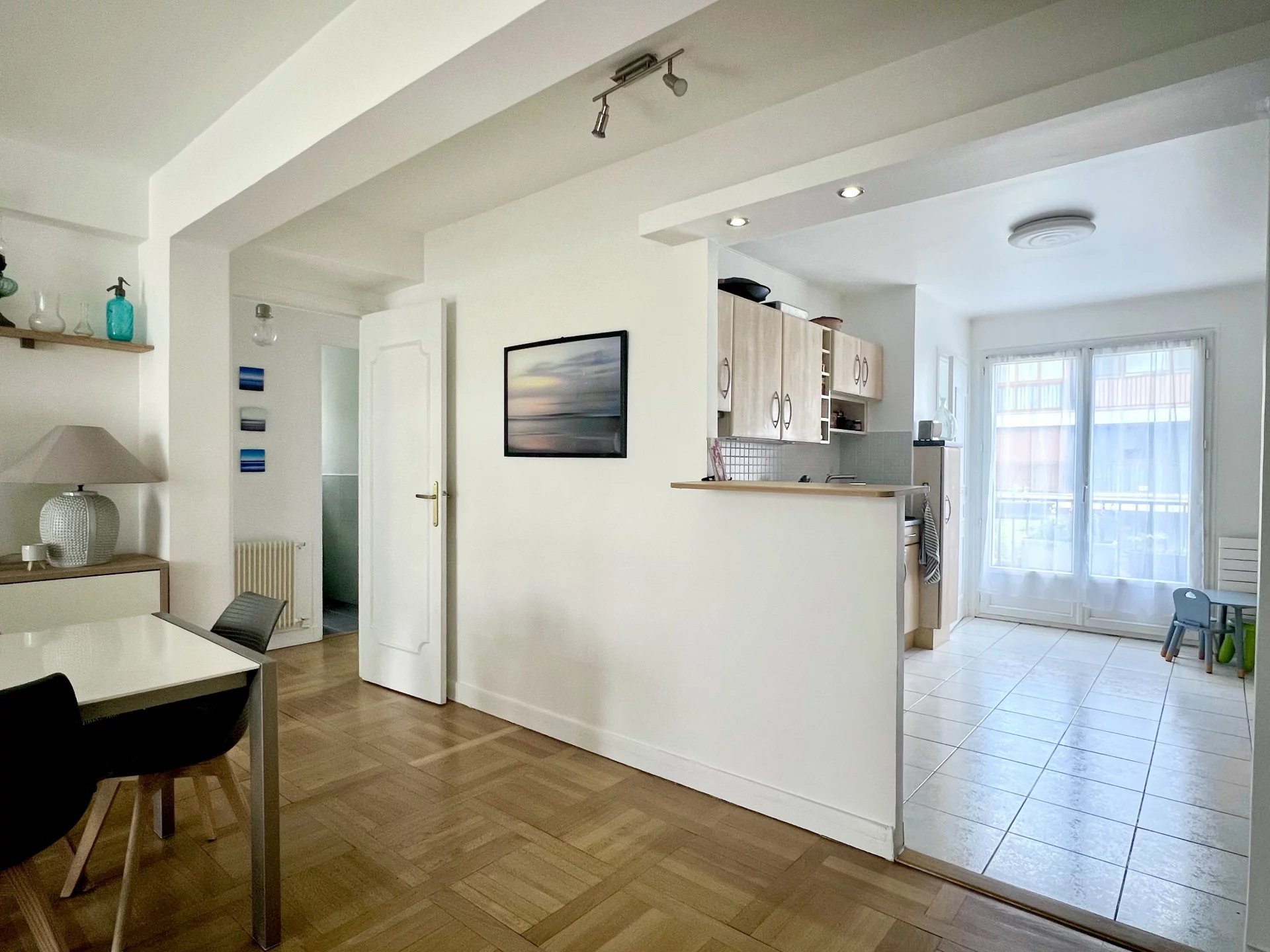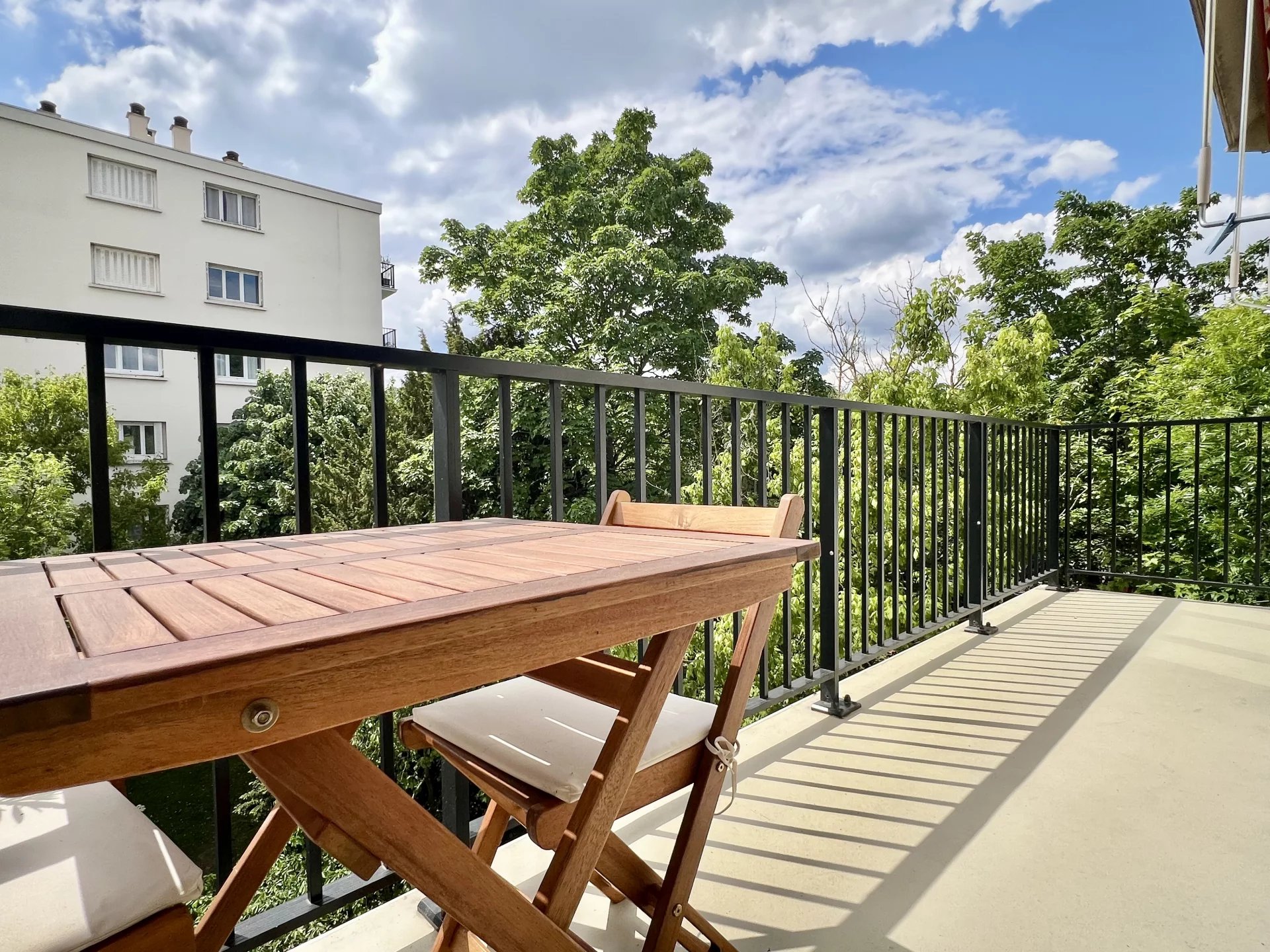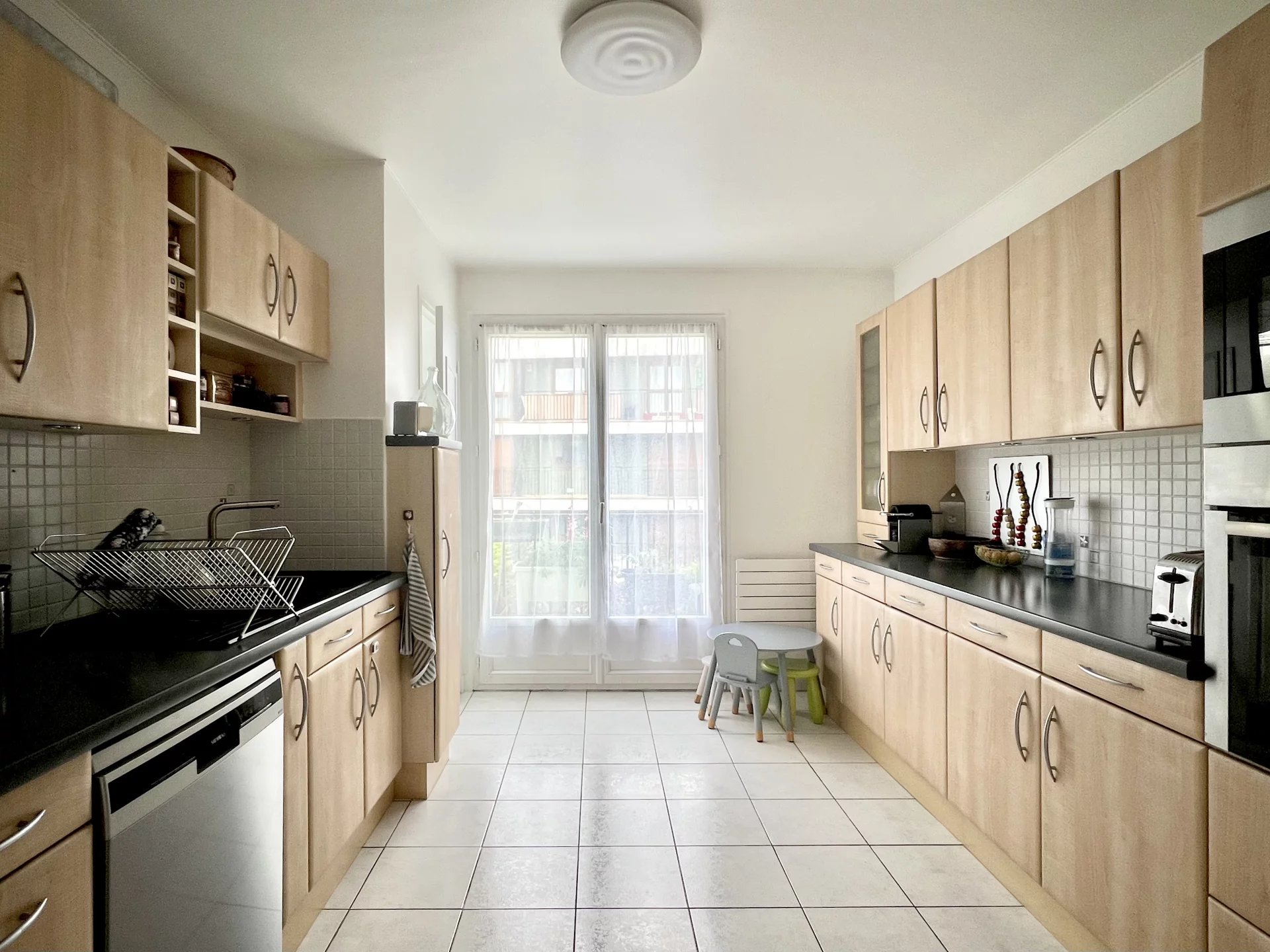 Quartier du Vieux Saint-Maur, à deux pas des bords de Marne. Niché au 4ᵉ et dernier étage d’une résidence, ce 3 pièces traversant de 85,53 m², exposé plein sud, est composé d’une entrée avec placards, d’un séjour, d’une grande cuisine ouverte sur la salle à manger avec cellier, ainsi que d’un espace nuit desservi par un dégagement, composé de part et d’autre de deux chambres, dont une avec dressing, d’une salle de douche et de toilettes séparées. L’appartement vient avec une cave ainsi qu’un box de parking. Deux magnifiques balcons filants longent l’appartement