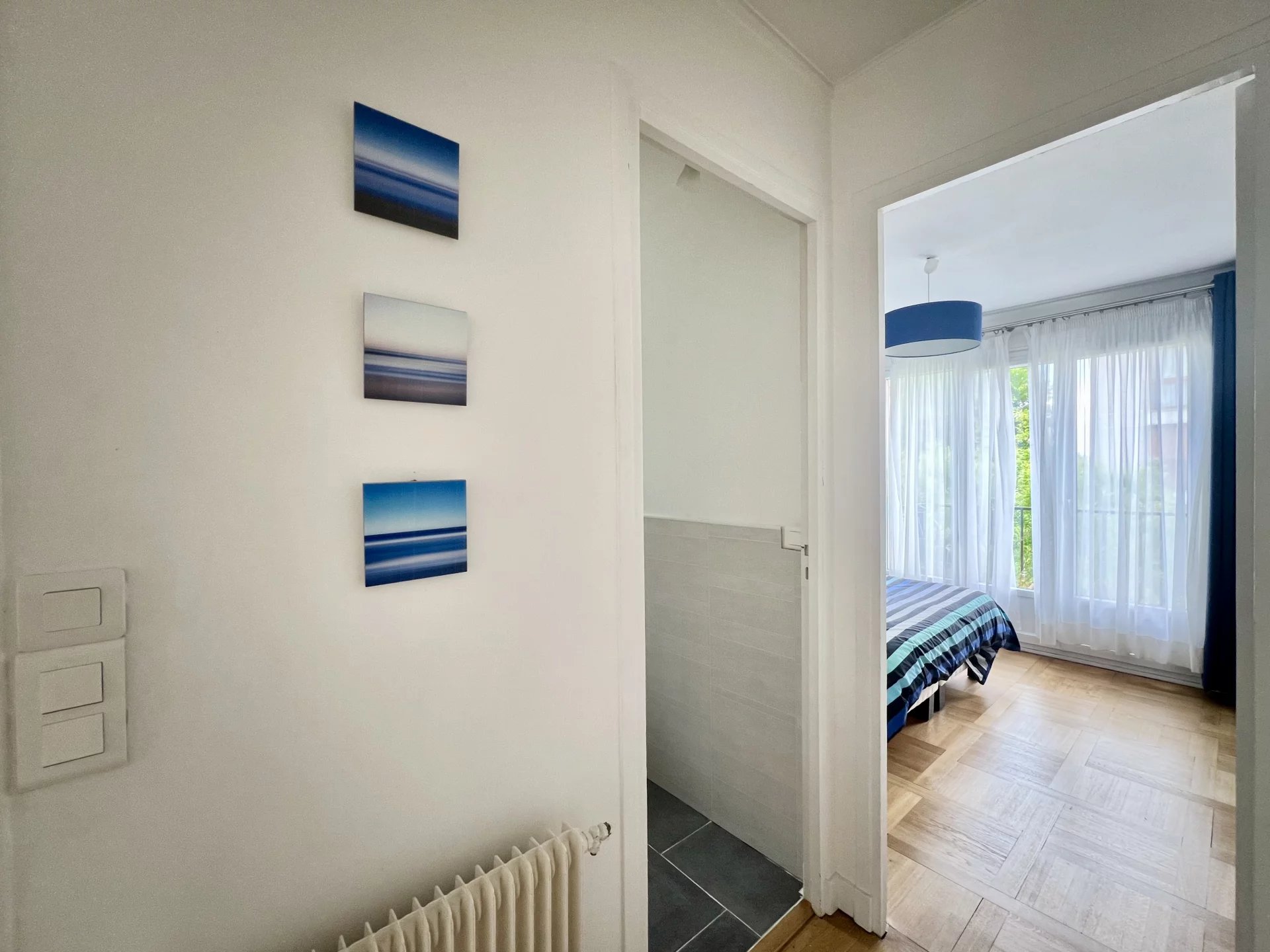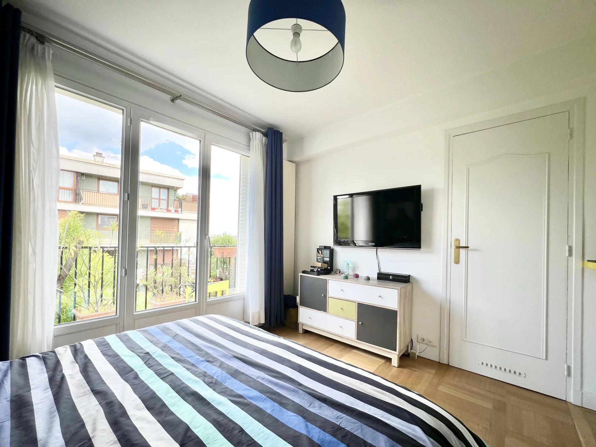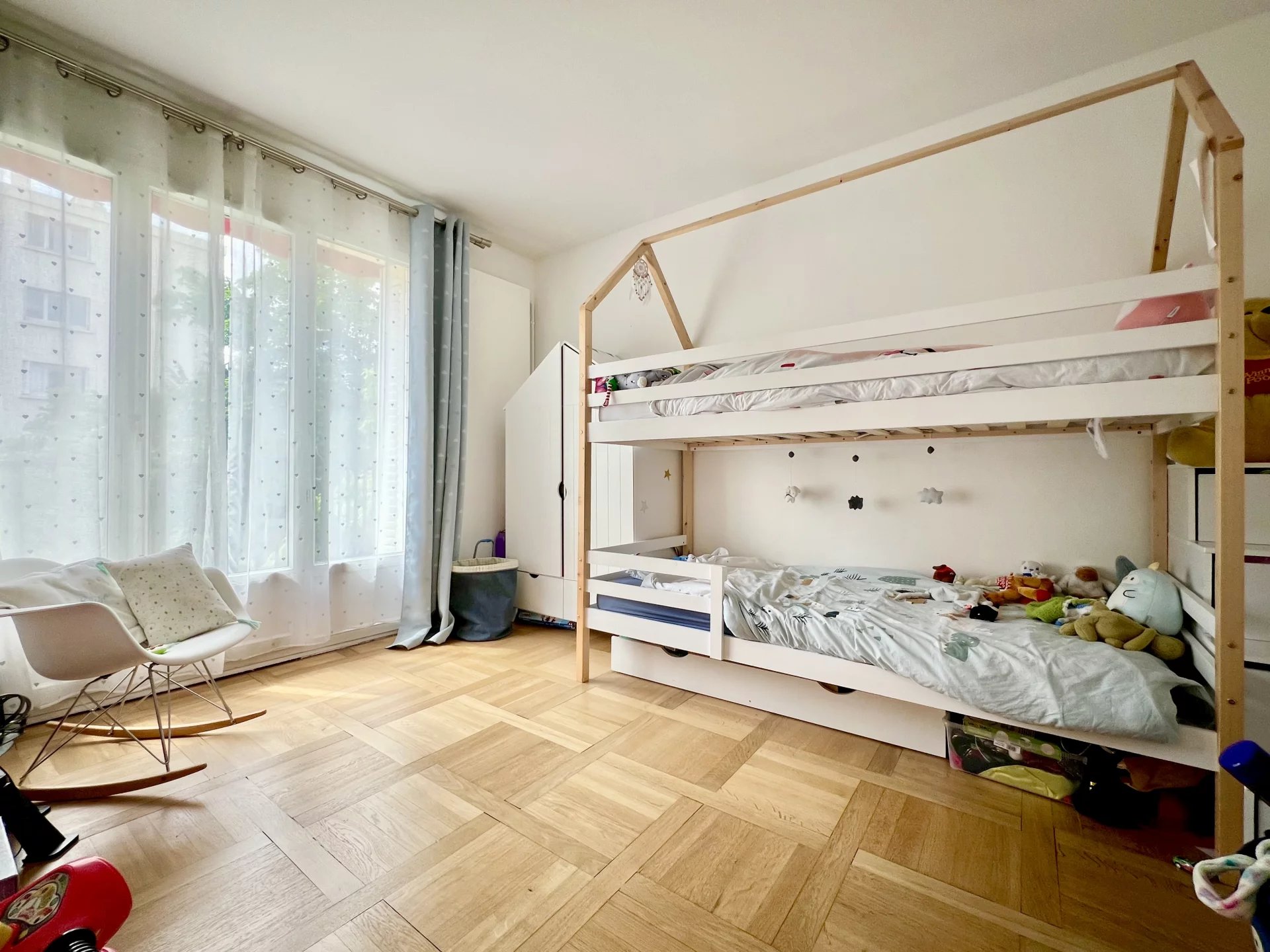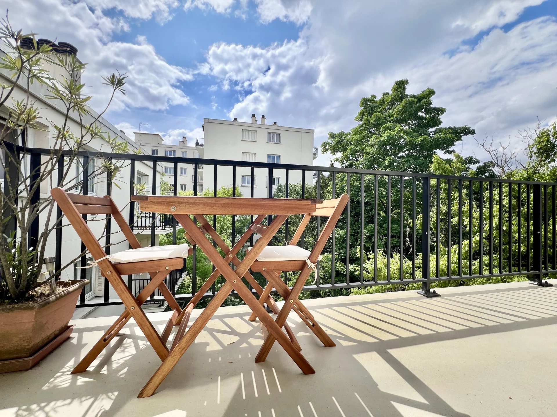 Quartier du Vieux Saint-Maur, à deux pas des bords de Marne. Niché au 4ᵉ et dernier étage d’une résidence, ce 3 pièces traversant de 85,53 m², exposé plein sud, est composé d’une entrée avec placards, d’un séjour, d’une grande cuisine ouverte sur la salle à manger avec cellier, ainsi que d’un espace nuit desservi par un dégagement, composé de part et d’autre de deux chambres, dont une avec dressing, d’une salle de douche et de toilettes séparées. L’appartement vient avec une cave ainsi qu’un box de parking. Deux magnifiques balcons filants longent l’appartement