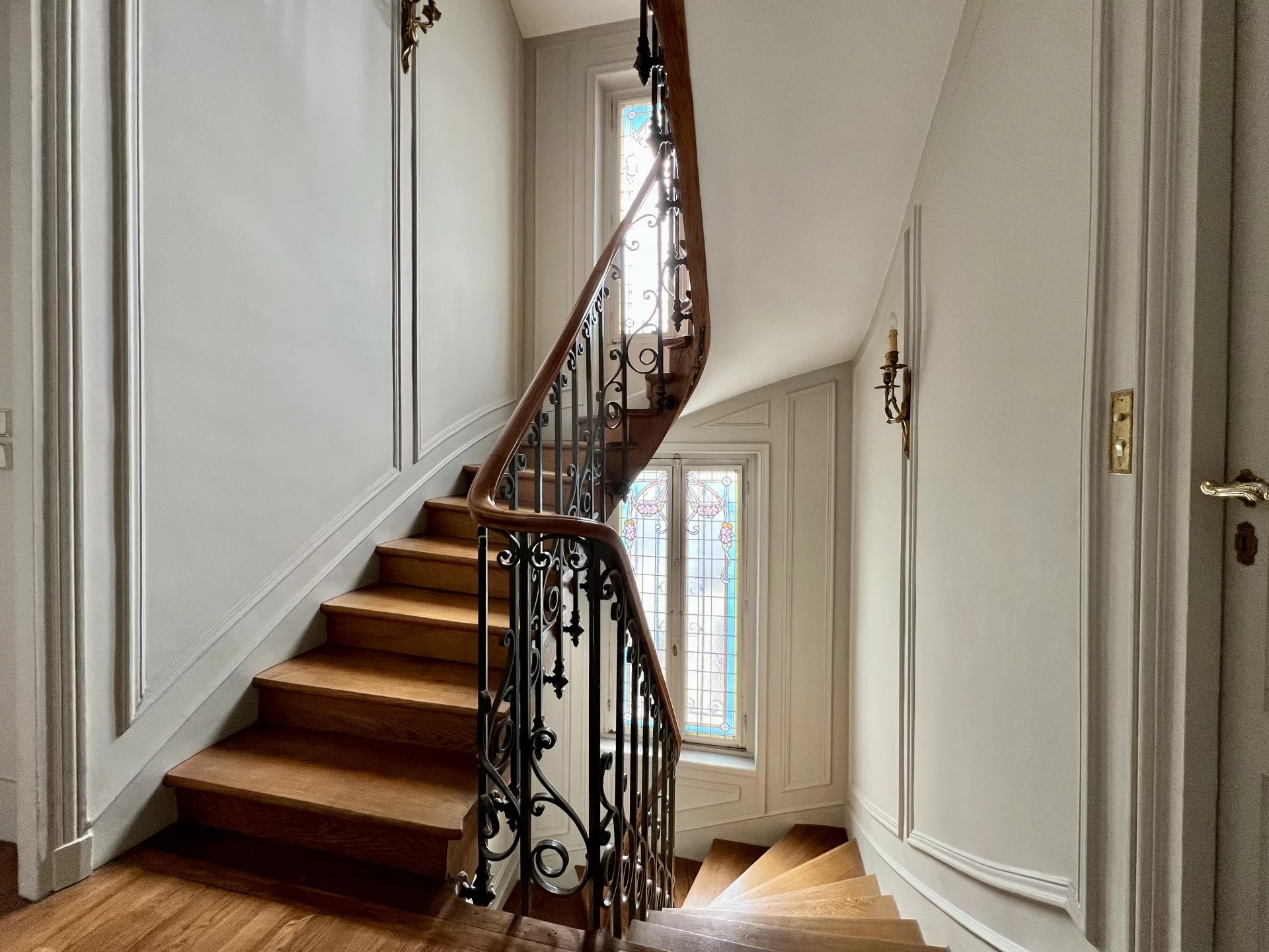 Matériaux nobles et éléments de confort : parquets massifs, moulures, boiseries sur mesure, ferronneries, pierres naturelles, sans oublier les équipements modernes tels que l’ascenseur, le portail motorisé, l’arrosage automatique et le système d’alarme.