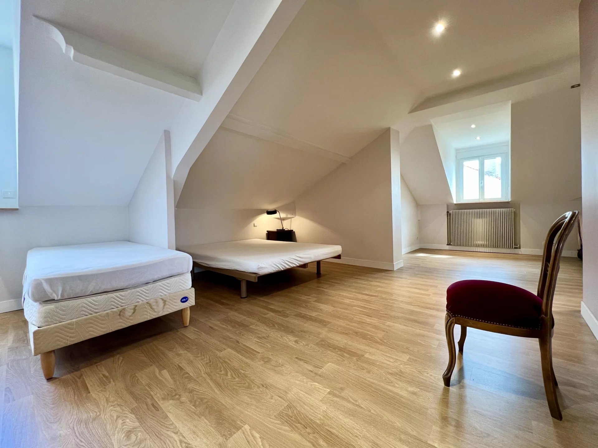 Une suite parentale digne d’un hôtel particulier avec dressing, salle de bains balnéo, douche et WC. Deux autres chambres, chacune avec leur propre salle d’eau ou de bains et WC