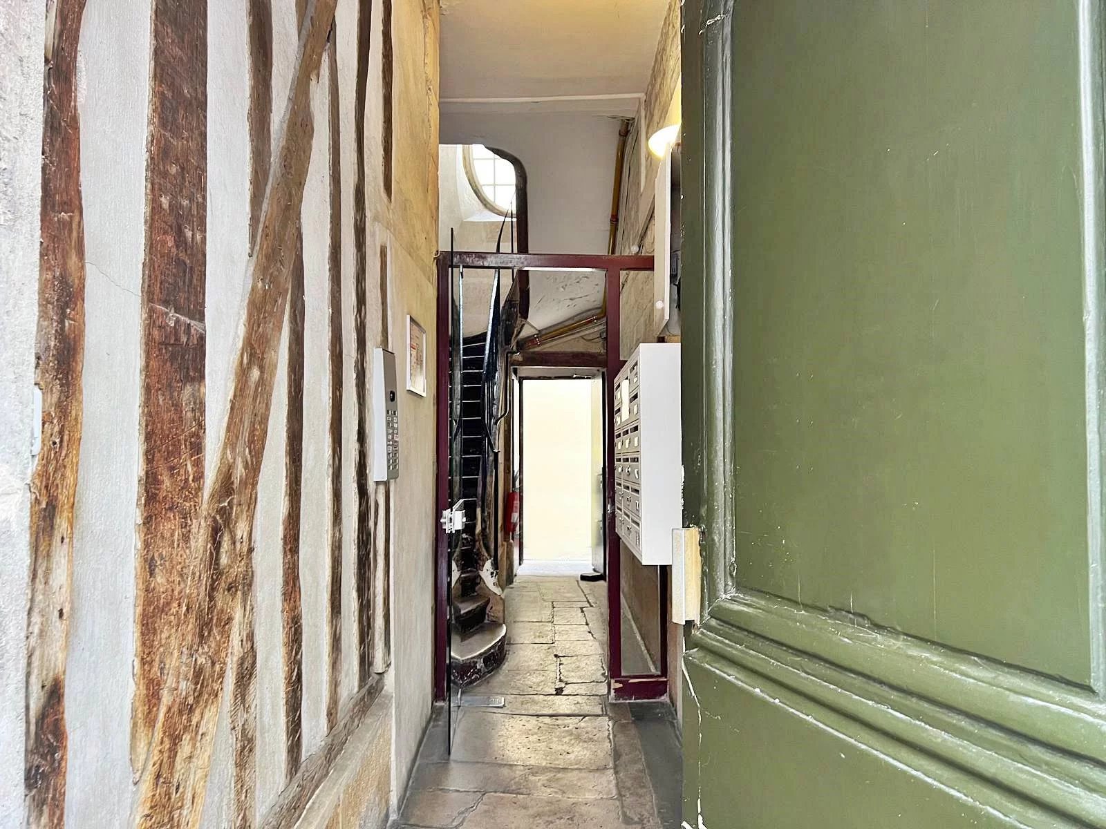 Dans l'un des plus beaux immeubles du marais, un appartement 2 pièces esprit loft, composé d'une entrée ouverte sur un très bel espace de vie avec cuisine équipée, une salle à manger, une salle d'eau, un wc. Cave en sous-sol. Charme de l'ancien et entièrement rénové. Lumineux, traversant, faibles charges.