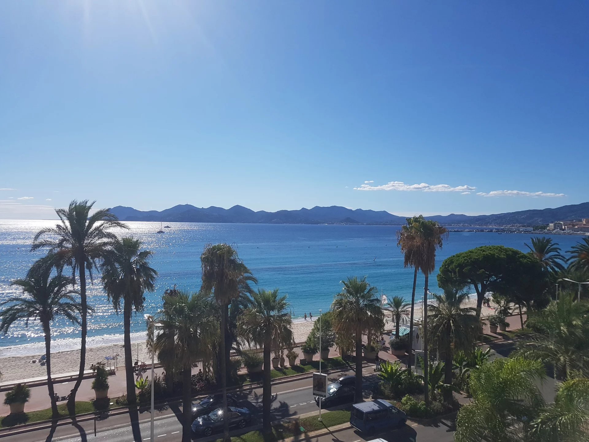 Appartement traversant de 90 m2 situé au 6 iè étage dans une résidence prestigieuse de la Croisette, Face à la Mer, parking, cave , luxueusement rénové,