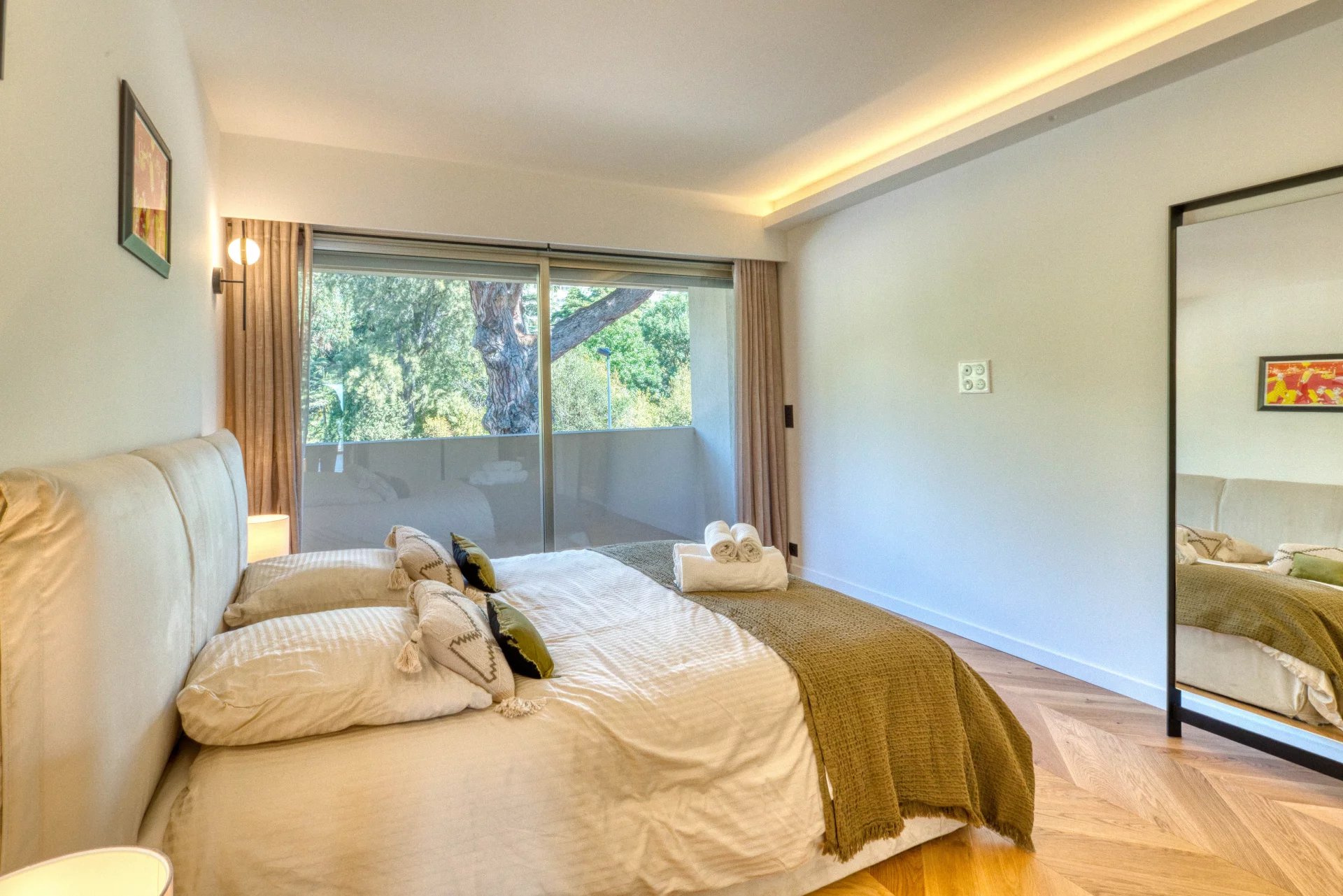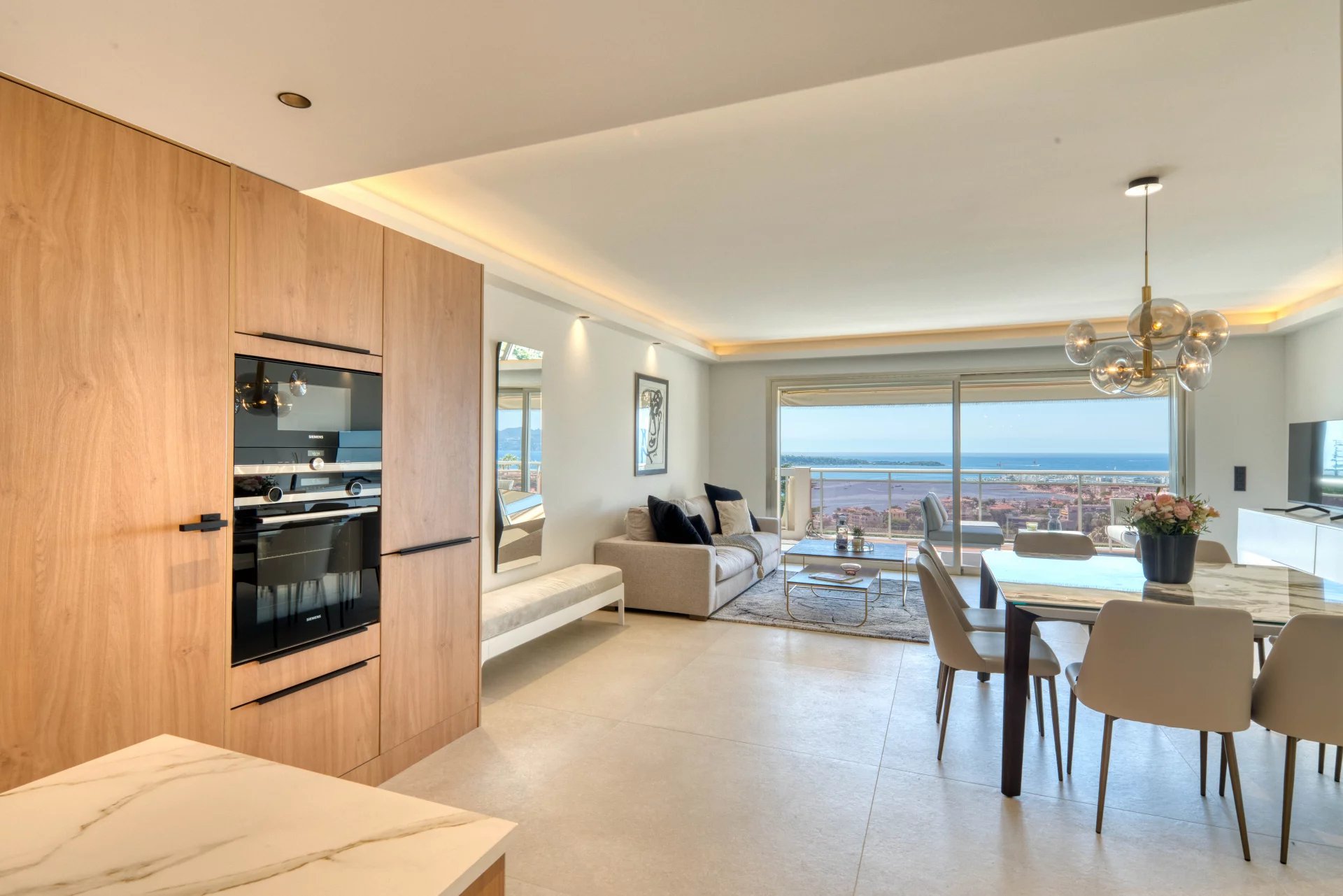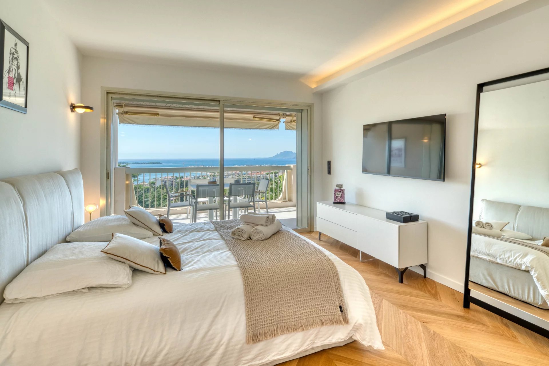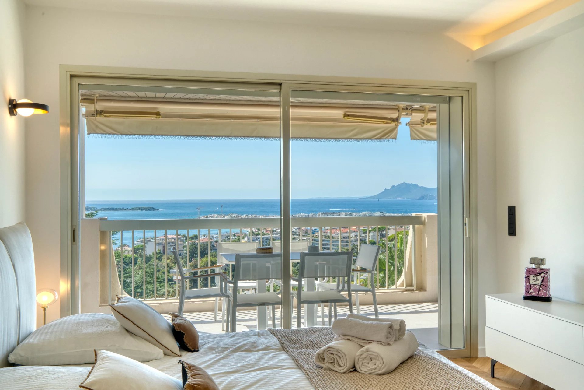 Dans l'un des secteurs les plus beaux et les plus prisés de Cannes, La Californie, au sein d'une résidence prestigieuse avec gardien et parc, ce sublime 4 pièces de 110 m2 en dernier étage se compose d'une entrée, d'un grand séjour avec cuisine ouverte, le tout donnant sur une terrasse de 18 m2 vue mer panoramique exposée sud, de 3 chambres dont une en suite avec penderies, salle de bains et WC, 2 autres salle de bains, un balcon au nord. Un grand garage double et une cave complètent ce bien.
