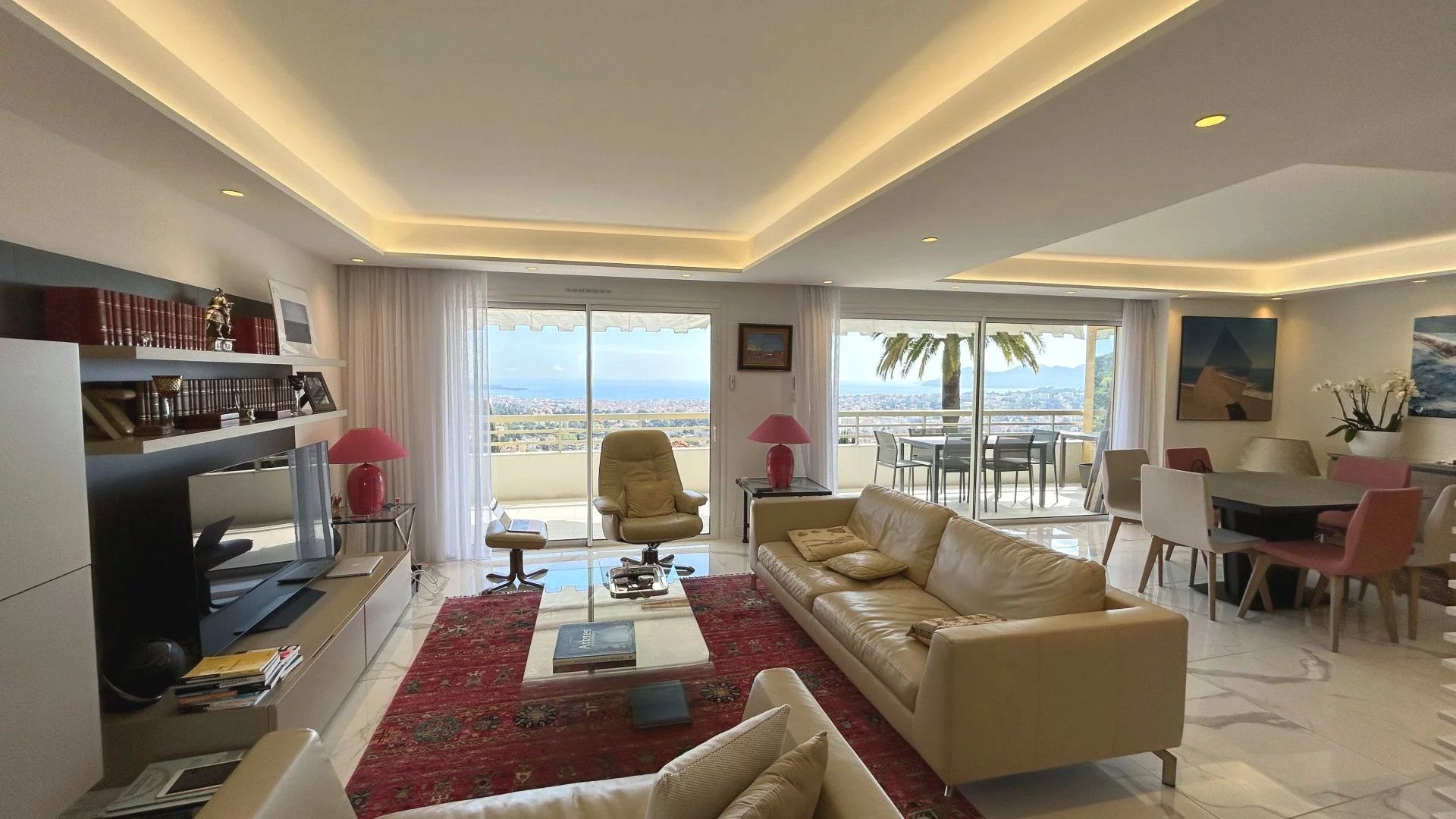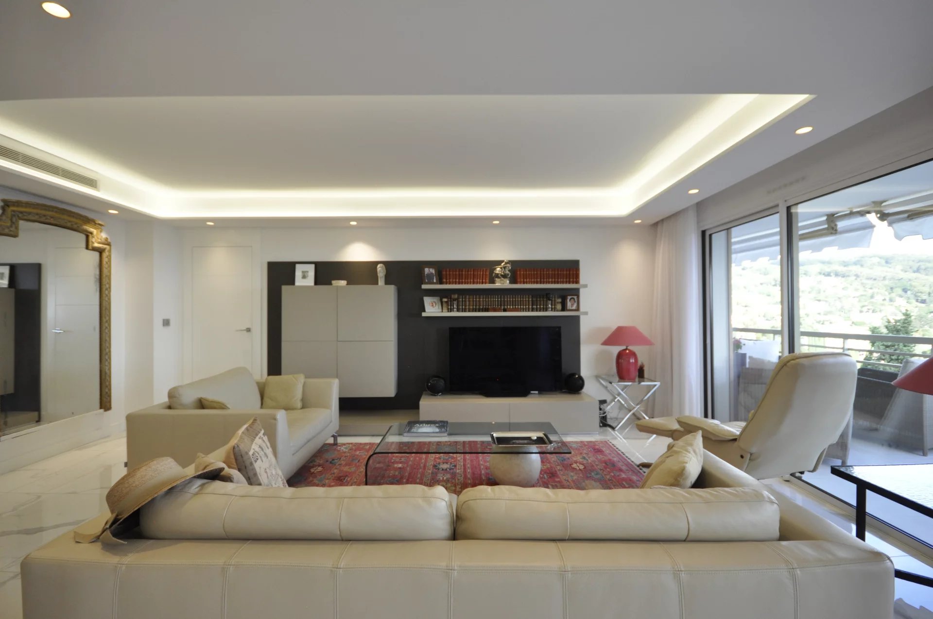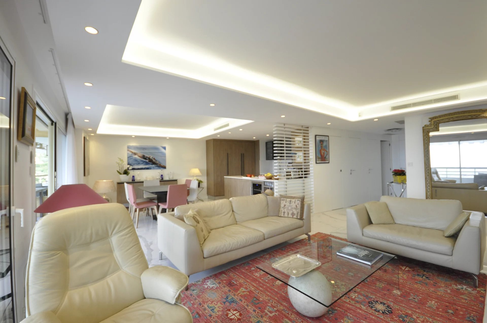 SOUS OFFRE - Au sein d'un des plus beaux secteurs du Cannet, dans une petite copropriété avec jardin et piscine, ce magnifique appartement d'environ 150 m2 de 5 pièces, se compose d'une entrée, séjour salle à manger et cuisine ouverte, le tout vu sur mer, une terrasse d'environ 40 m2 exposée sud, 4 chambres avec dressing et salle de bains. Un double garage avec électricité, une cave d'environ 15 m2.