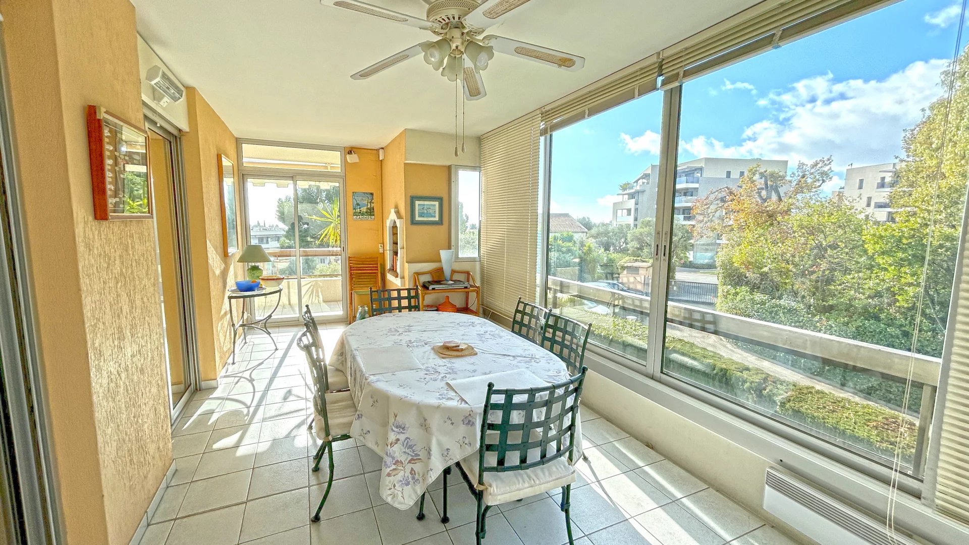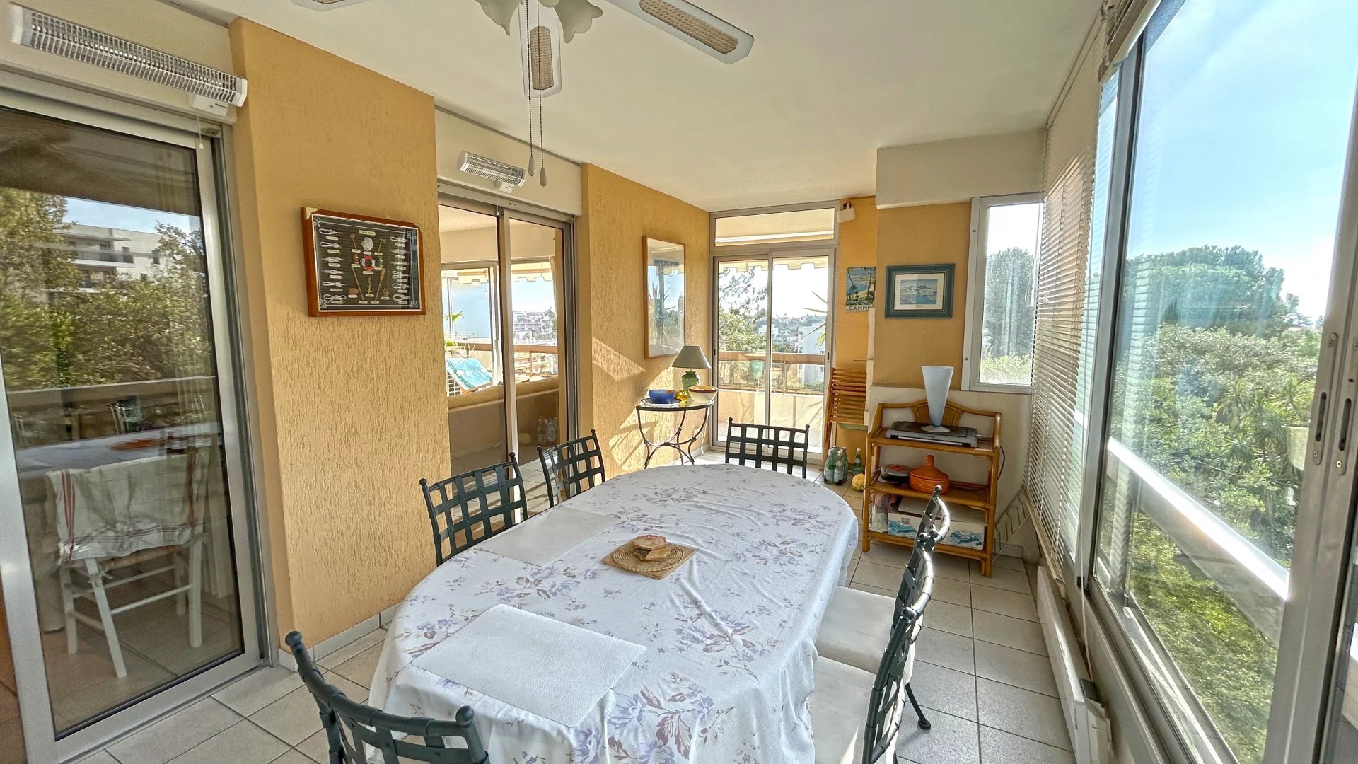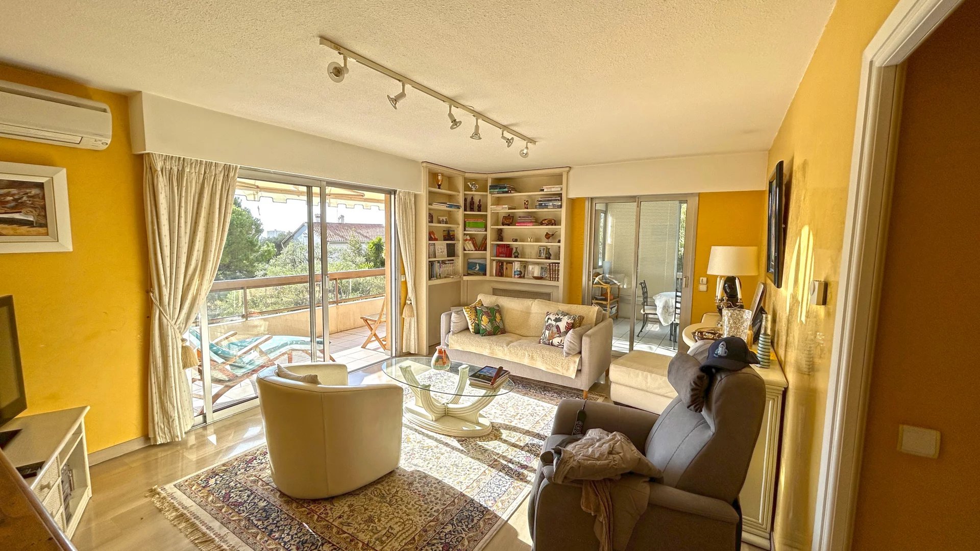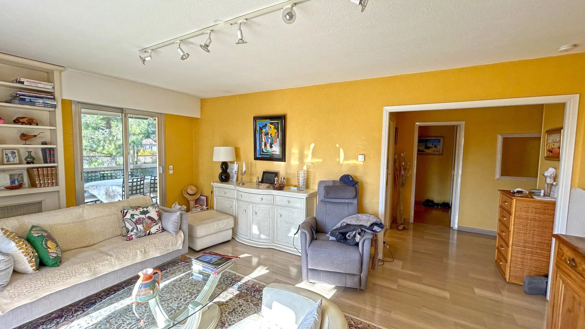 Nel cuore di un residence con piscina, parco e campo da tennis, questo ampio trilocale di circa 66 m2 è composto da un ingresso, un soggiorno con accesso alla terrazza esposta a sud con vista sul verde e una piccola vista sul mare, una cucina indipendente e attrezzata, 2 camere da letto, un bagno con doccia e lavabo, un WC indipendente, una loggia di circa 20 m2, numerosi spazi di stoccaggio nell'appartamento. Una cantina e un garage nel seminterrato completano questa proprietà.