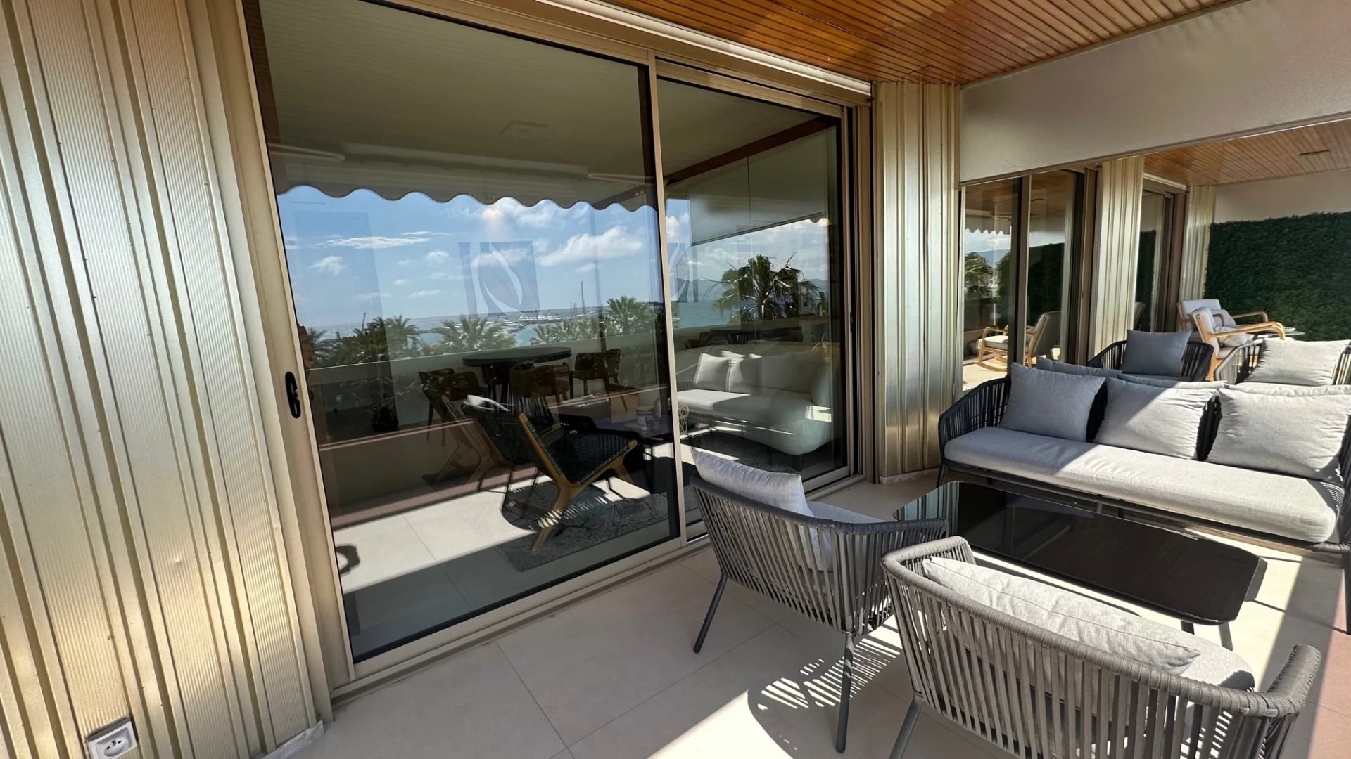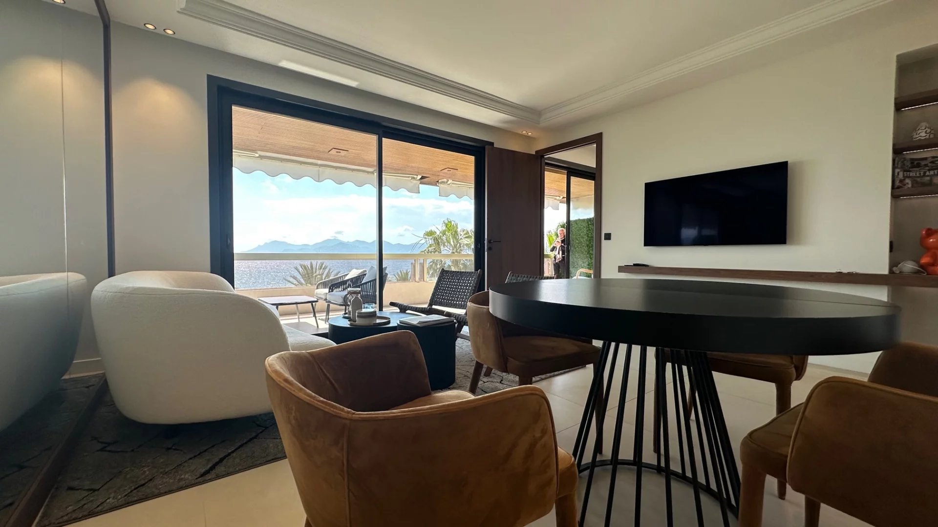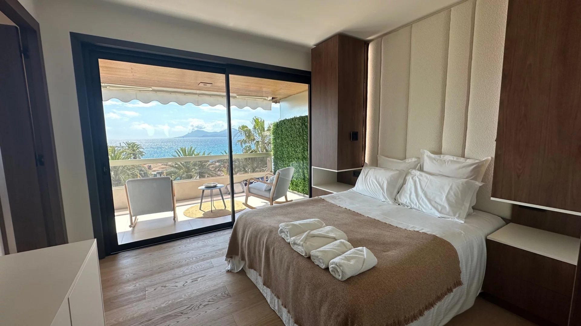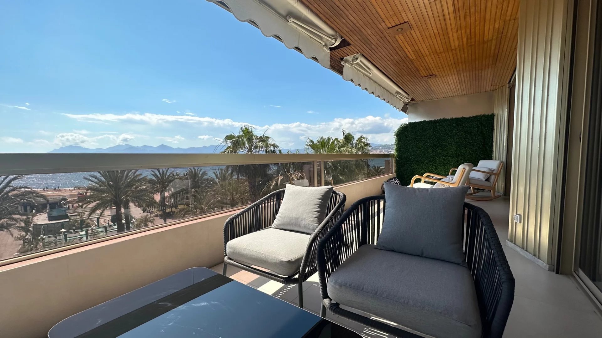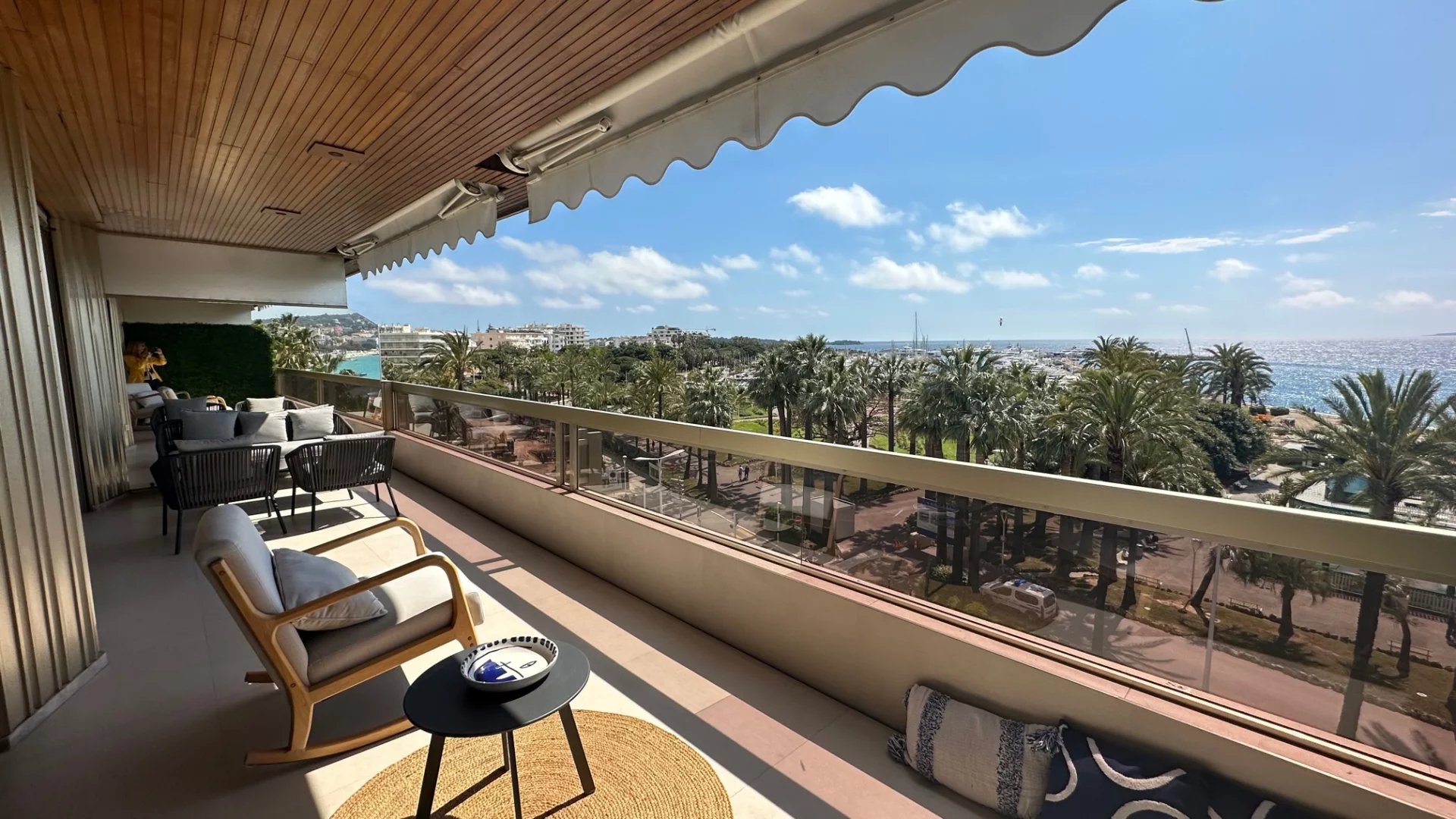 Superbe 3 p, superbe vue mer, luxueusement rénové, première ligne croisette, cuisine séparée, séjour salon ouvrant sur une terrasse vue mer panoramique,1 chambre de maitre et salle de bains,1 chambre avec douche à l'italienne, buanderie. Produit rare possibilité d'acquérir une place de parking en sous sol en supplément