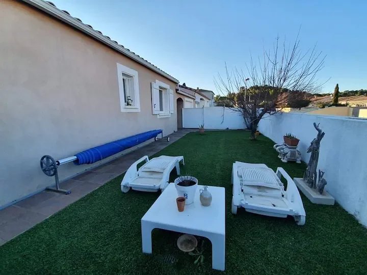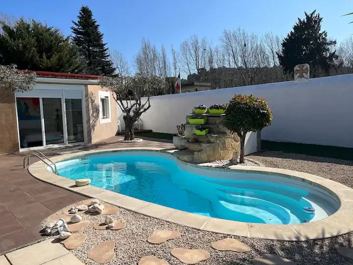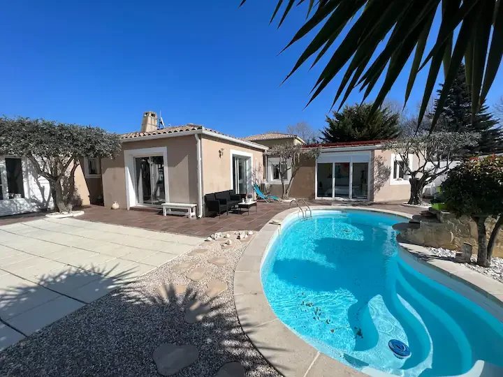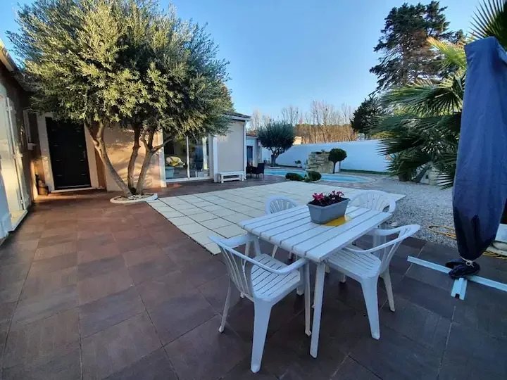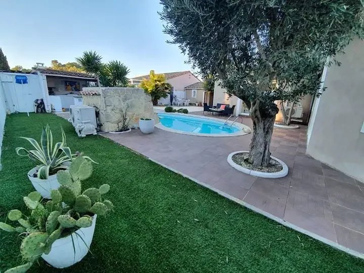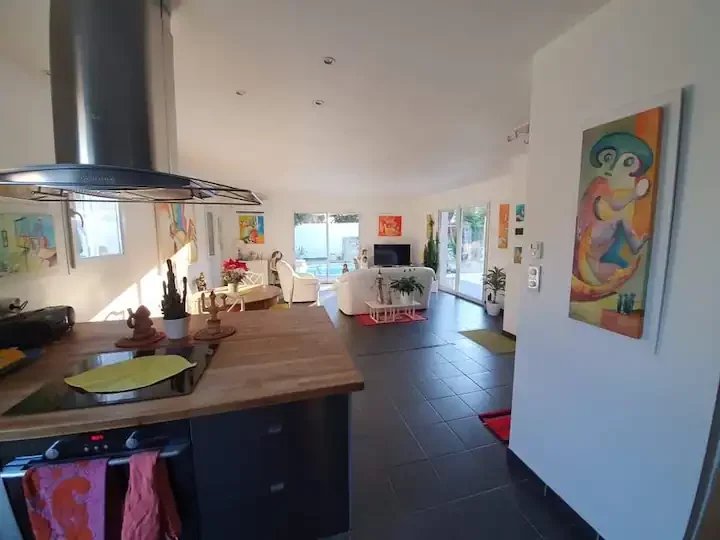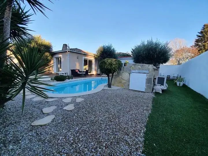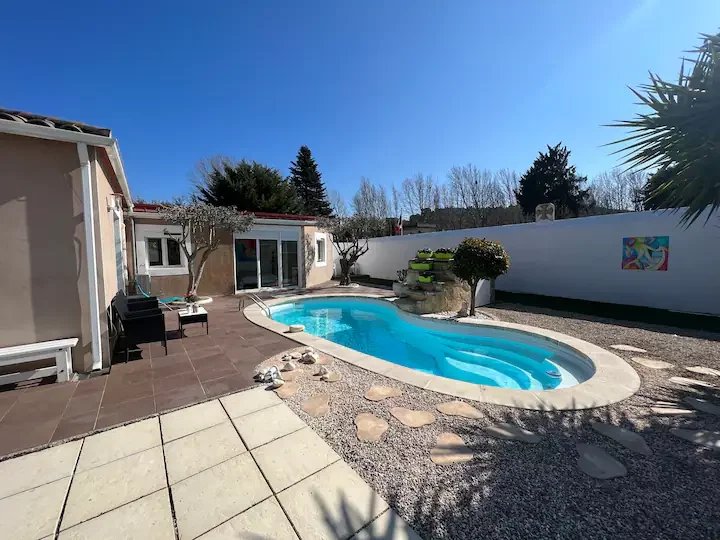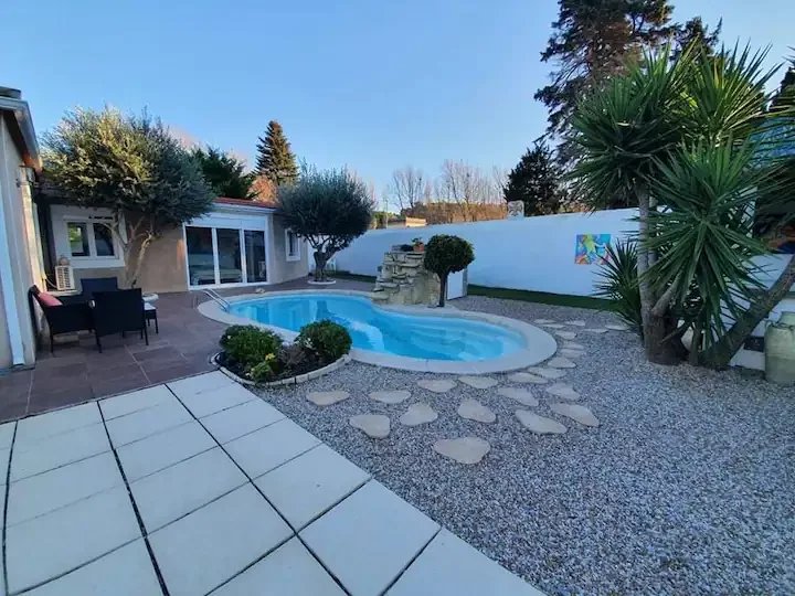 Cette sublime maison au calme et sans vis a vis, vous permettra de vous détendre autours de la piscine et sa cuisine d'été.