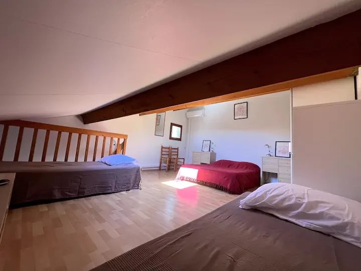 Idéal pour les vacances en famille ! Cet agréable pavillon mezzanine situé à Gruissan, dans une résidence à 100 m de la grande bleue, se compose d'une pièce à vivre avec coin cuisine ouvrant sur une belle terrasse, une salle d'eau avec WC incorporé, une chambre en mezzanine avec lit double (140), une deuxième chambre avec 2 lits simples (2 x 90). Résidence au calme. Place de parking libre. UNE CAUTION SERA EXIGÉE À VOTRE ARRIVÉE, LE LINGE DE MAISON AINSI QUE LE MÉNAGE NE SONT PAS INCLUS DANS LA RESERVATION MAIS OPTIONNELS A LA DEMANDE.