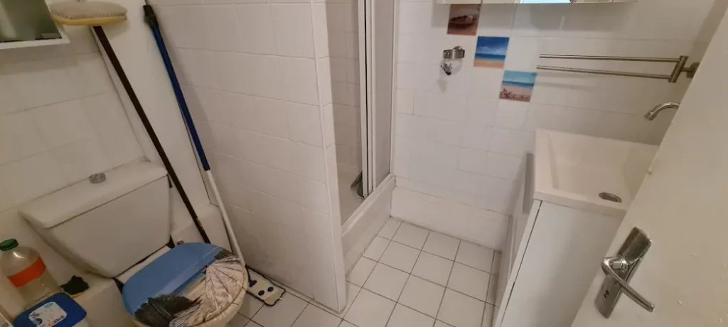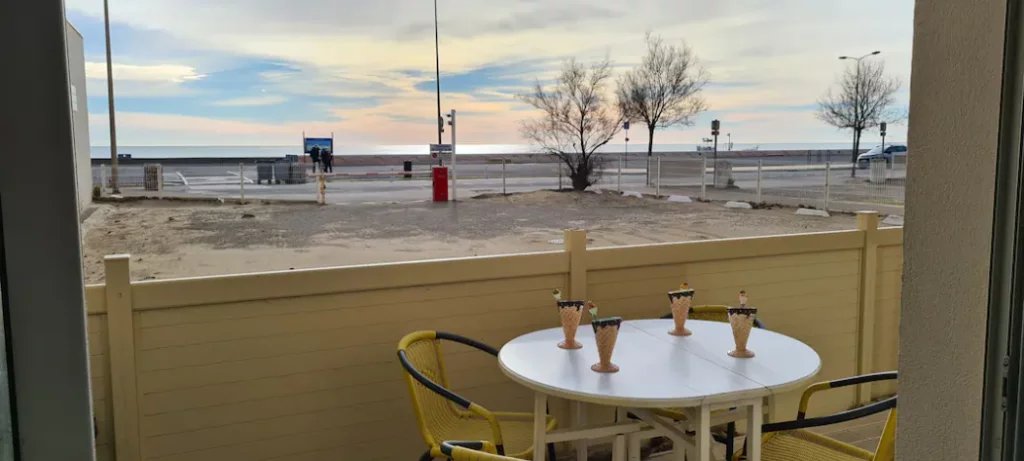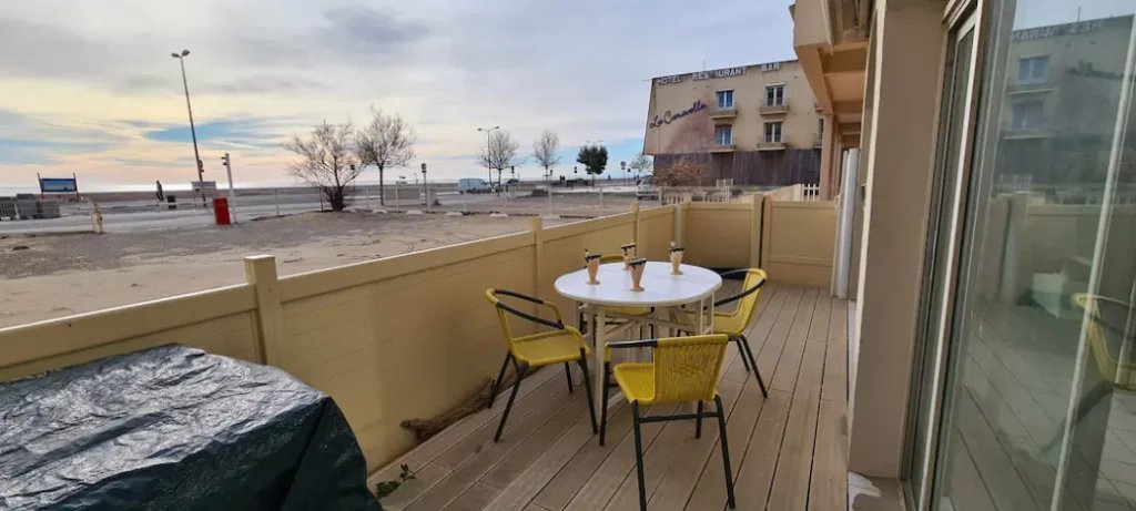 A 4 mètres de la plage Superbe T3 en rez de chaussée avec terrasse en front de mer équipé d’un store.