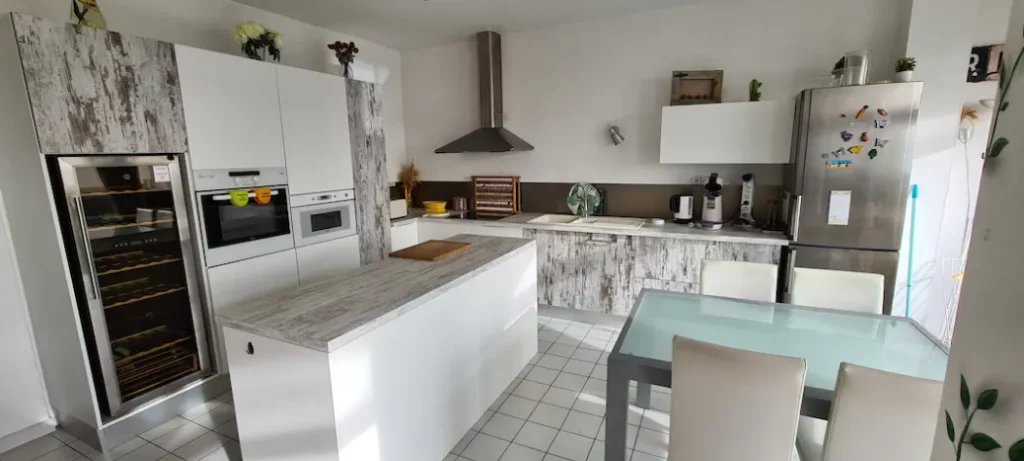 Ils dispose d'une grande pièce à vivre avec cuisine équipée (four, micro-ondes, plaque induction, cave à vin, lave vaisselle, micro-ondes), salon salle à manger, une chambre avec un lit double (140) et TV, une 2ième chambre avec 2 lits superposés (90), une salle d'eau avec wc.