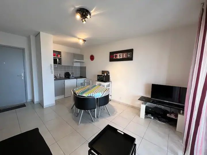 Situé juste en face du marché couvert et du centre ville de saint Pierre la mer, ce T2 moderne situé au 2eme étage d’une petite copropriété avec place de parking sécurisé.