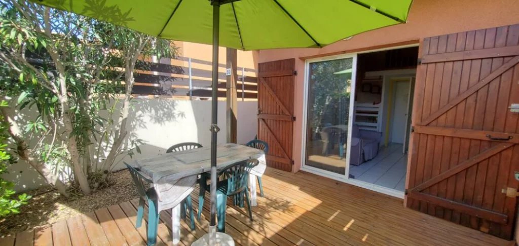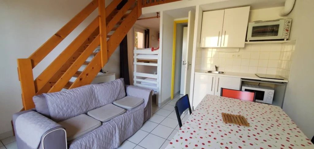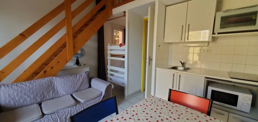 Dans les hauteurs de Narbonne-Plage aussi appelé "La Falaise" , à 700m de la plage et à 500m des commerces. Le logement se compose d'une pièce à vivre avec coin kitchenette ouvrant sur une belle terrasse , coin cabine avec lits superposés (2X90), une SDE avec WC, une chambre en mezzanine avec li double (140) Au sein d'une résidence calme et sécurisée, vous disposerez d'une piscine collective (ouverte de mi juin à mi septembre), table de ping-pong, volley, pétanque et d'une laverie.