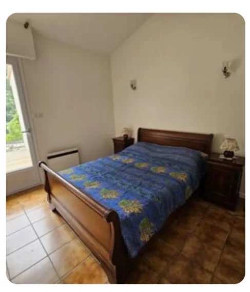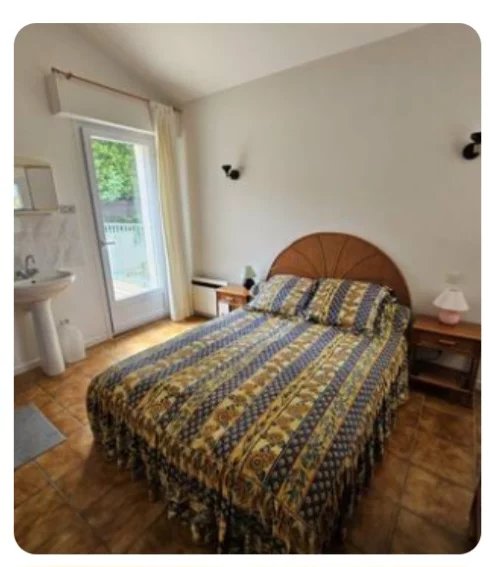Au rez-de-chaussée , la chambre 1 , avec un lit en 140 avec accès terrasse arrière et salle d'eau privative (douche /lavabo)