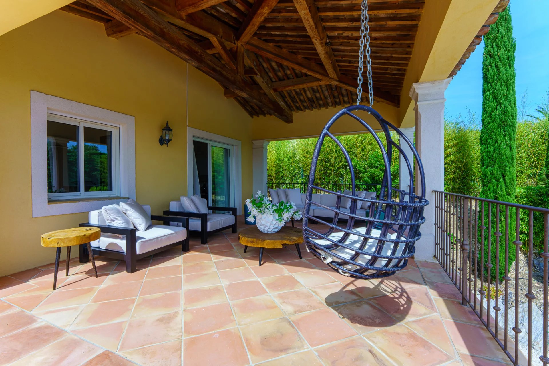 La villa est située sur un grand terrain (2.500 m2) avec de grandes terrasses avec des chaises longues, divers sièges de salon et des coins repas et on peut profiter de la piscine avec jacuzzi, le pool house et la cuisine d'été avec BBQ ; le 'Big Green Egg'.