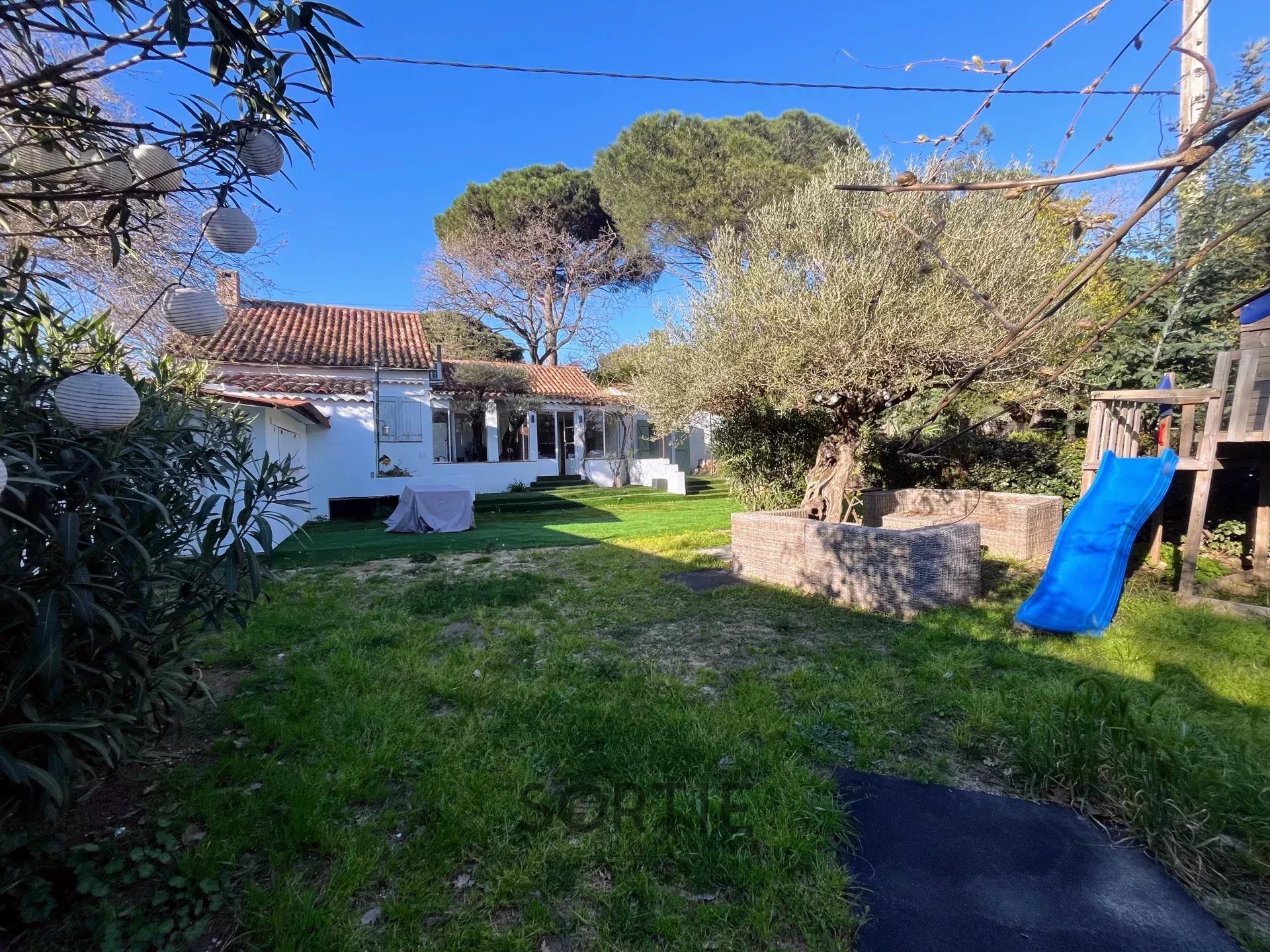 Idéalement située au cœur de Ramatuelle, cette maison mitoyenne exposée plein sud s’étend sur une parcelle d’environ 850 m². D’une surface habitable de 102 m², elle comprend une terrasse couverte de 23 m², offrant un espace de vie agréable. Elle dispose de quatre chambres climatisées, chacune avec sa propre salle d’eau et toilettes, dont trois bénéficient d’un accès direct à une terrasse. Un studio indépendant, composé d’un espace nuit, d’une kitchenette et d’une salle de bain, s’ouvre également sur une terrasse privative. Cette propriété offre un stationnement pour cinq véhicules et présente un fort potentiel d’aménagement, avec la possibilité d’ajouter un pool house, une extension de 30 m² et un garage. Son usage peut être mixte, convenant aussi bien à une habitation qu’à des bureaux ou une activité commerciale. Des travaux de rénovation sont à prévoir, laissant libre cours aux projets de personnalisation. Une belle opportunité à découvrir.