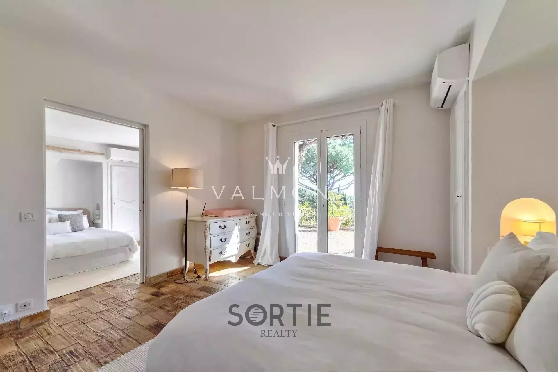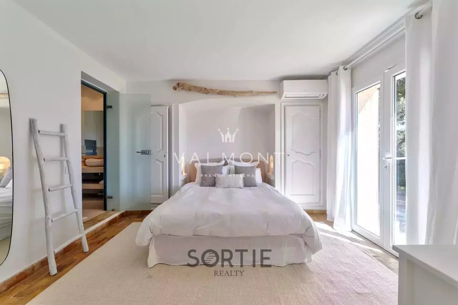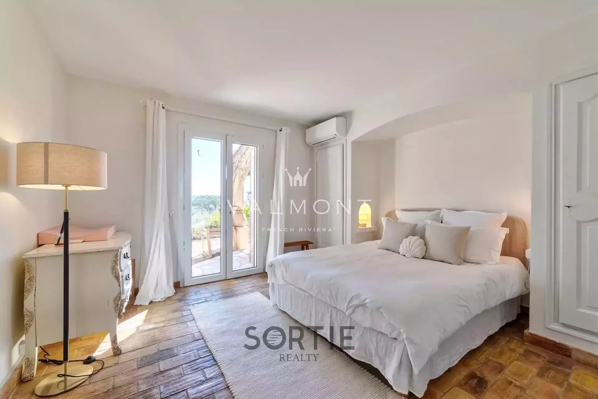 Idéalement située à Ramatuelle, cette magnifique villa offre une vue imprenable sur la campagne et la mer au loin. La maison principale dispose d’un vaste salon et d’une salle à manger s’ouvrant sur une grande terrasse, offrant une parfaite harmonie entre intérieur et extérieur. Elle comprend **quatre spacieuses chambres** et **trois salles de bains**, dont une somptueuse suite parentale à l’étage. Une maison d’amis indépendante garantit intimité et confort supplémentaire, avec **deux chambres supplémentaires** et **une salle de bains**, ainsi qu’un élégant pool house. Érigée sur un **terrain de 1,5 hectare**, la propriété bénéficie d’équipements d’exception, incluant **un court de tennis et un héliport privé**, tout en profitant d’un panorama à couper le souffle. Une opportunité rare d’allier luxe et sérénité dans l’un des lieux les plus prisés de la Côte d’Azur.
