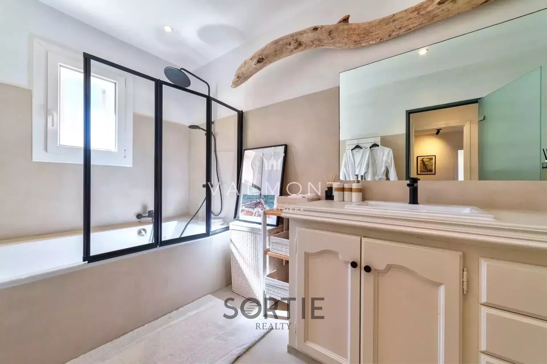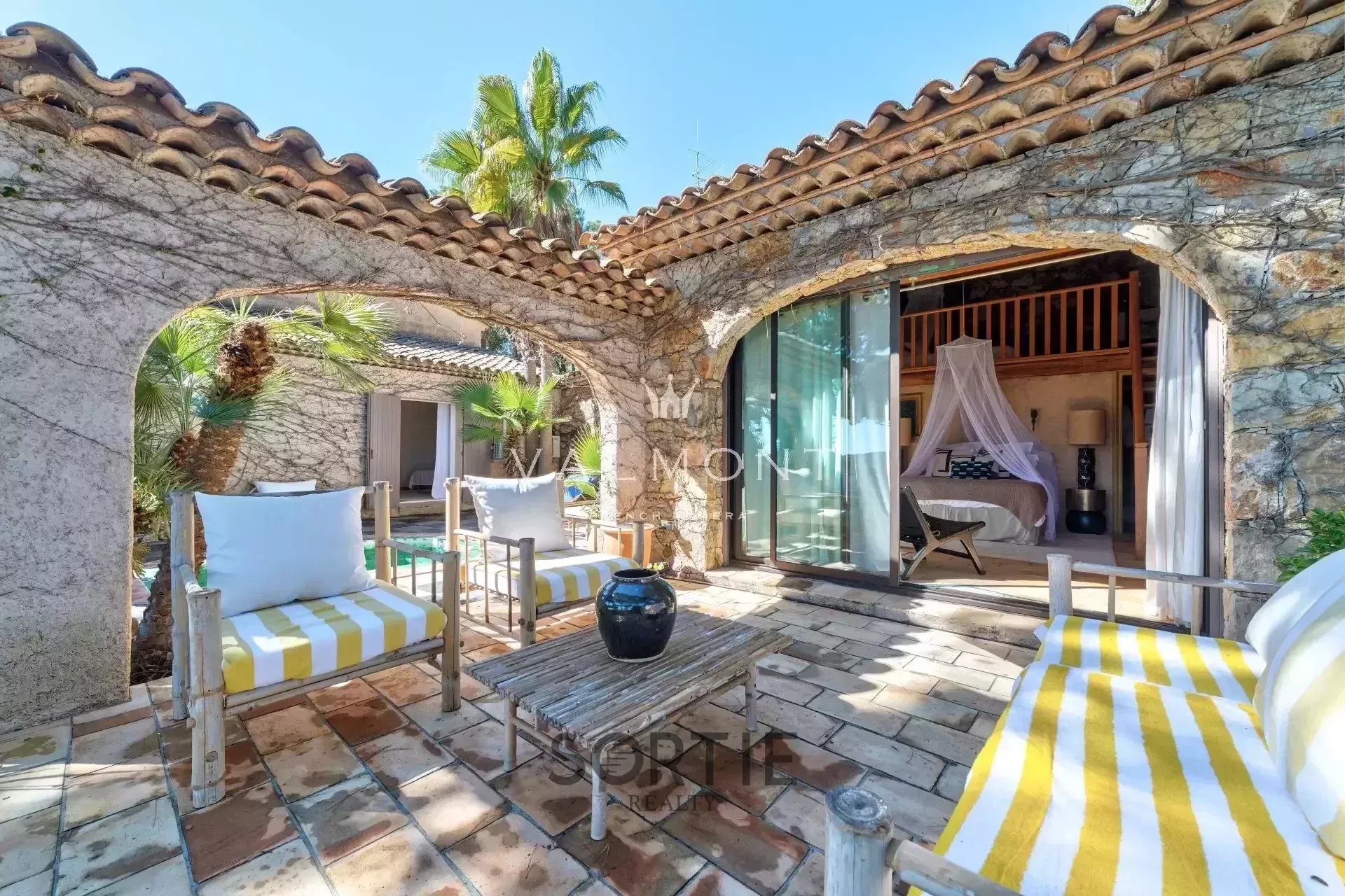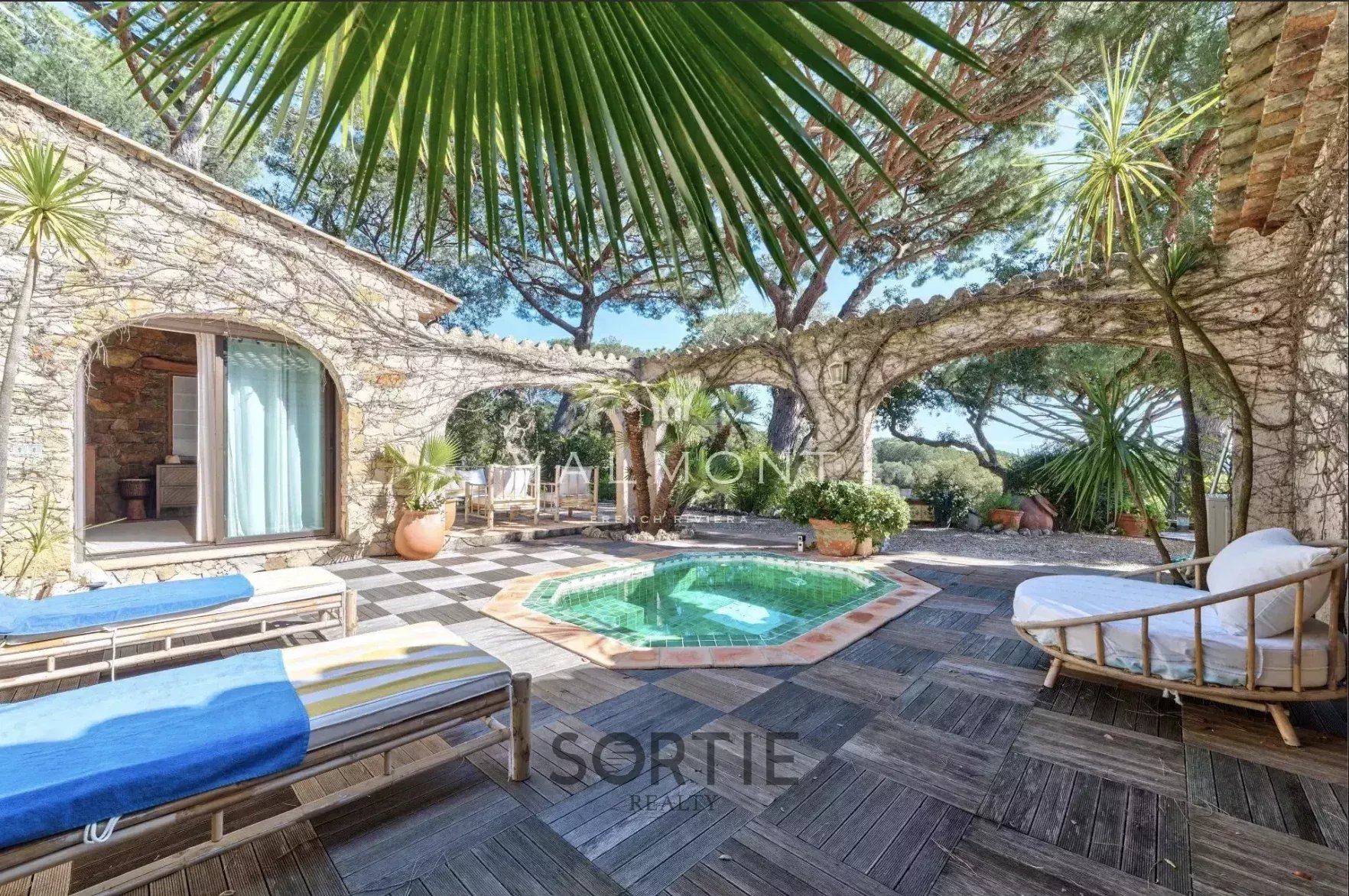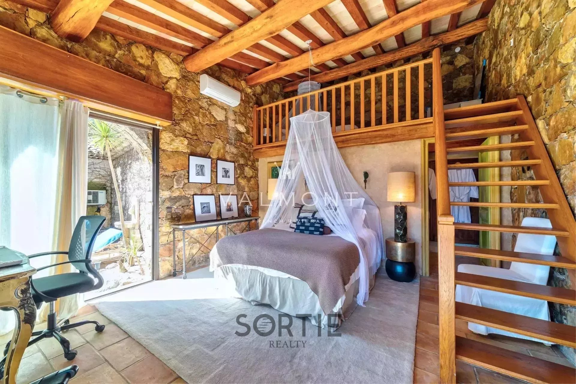 Idéalement située à Ramatuelle, cette magnifique villa offre une vue imprenable sur la campagne et la mer au loin. La maison principale dispose d’un vaste salon et d’une salle à manger s’ouvrant sur une grande terrasse, offrant une parfaite harmonie entre intérieur et extérieur. Elle comprend **quatre spacieuses chambres** et **trois salles de bains**, dont une somptueuse suite parentale à l’étage. Une maison d’amis indépendante garantit intimité et confort supplémentaire, avec **deux chambres supplémentaires** et **une salle de bains**, ainsi qu’un élégant pool house. Érigée sur un **terrain de 1,5 hectare**, la propriété bénéficie d’équipements d’exception, incluant **un court de tennis et un héliport privé**, tout en profitant d’un panorama à couper le souffle. Une opportunité rare d’allier luxe et sérénité dans l’un des lieux les plus prisés de la Côte d’Azur.