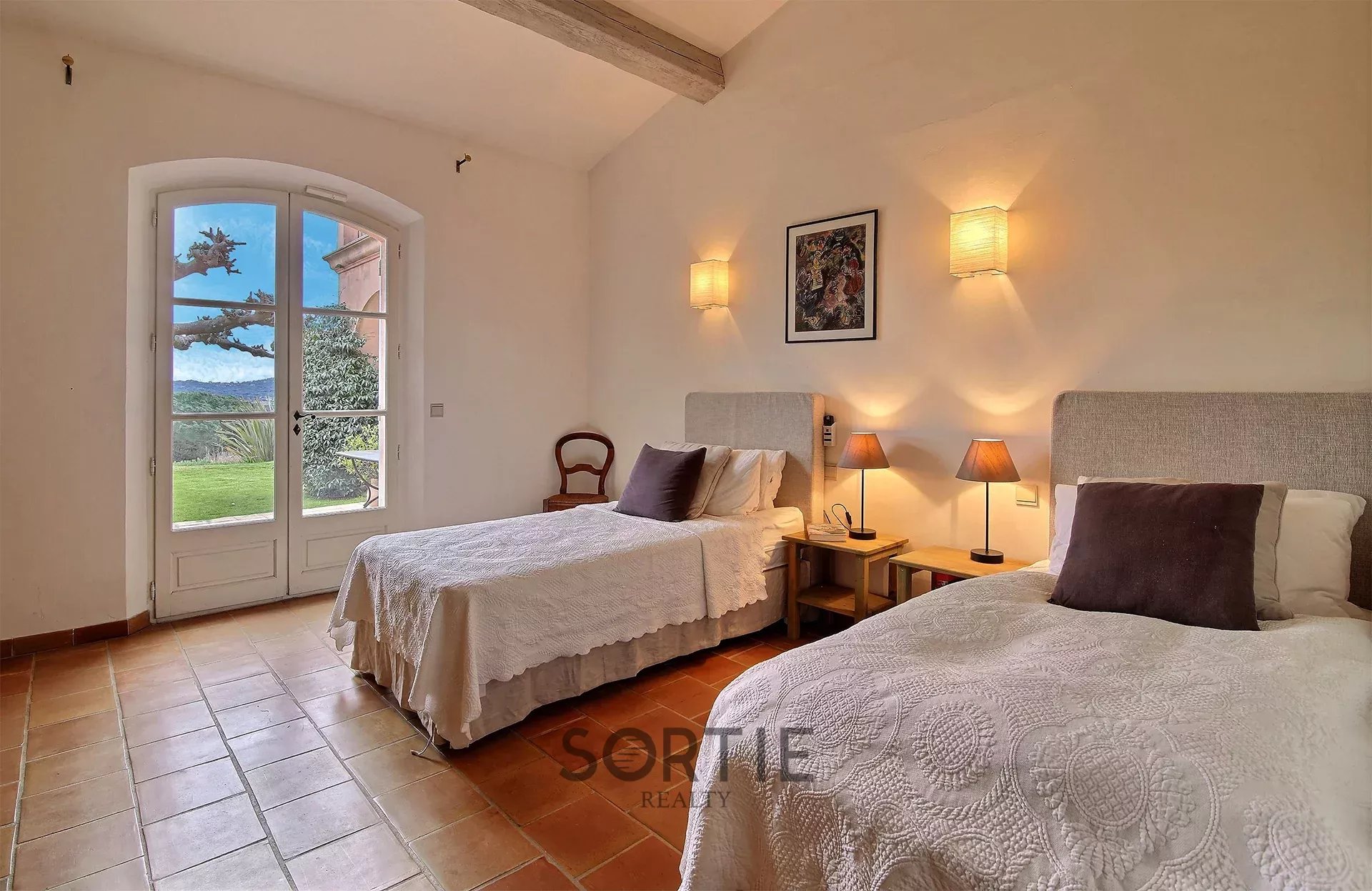 Cette magnifique villa est située dans la paisible colline et les vignobles de Ramatuelle, à seulement 5 minutes du Club 55 et des nombreux autres clubs de plage charmants sur la célèbre plage de Pampelonne. Elle dispose de 7 chambres, dont 2 chambres doubles, dont la suite principale avec un lit king size, et 5 chambres équipées chacune de deux lits jumeaux. La majorité des chambres bénéficient de salles de bains privatives. Le poolhouse est équipé d’une cheminée et d’une cuisine d'été extérieure, ainsi que d’une chambre supplémentaire pour le personnel, si nécessaire. Équipements : climatisation, barbecue, wifi, système de musique Sonos dans toute la villa, piano, pétanque, table de ping-pong, chauffage de la piscine, télévision satellite, etc.