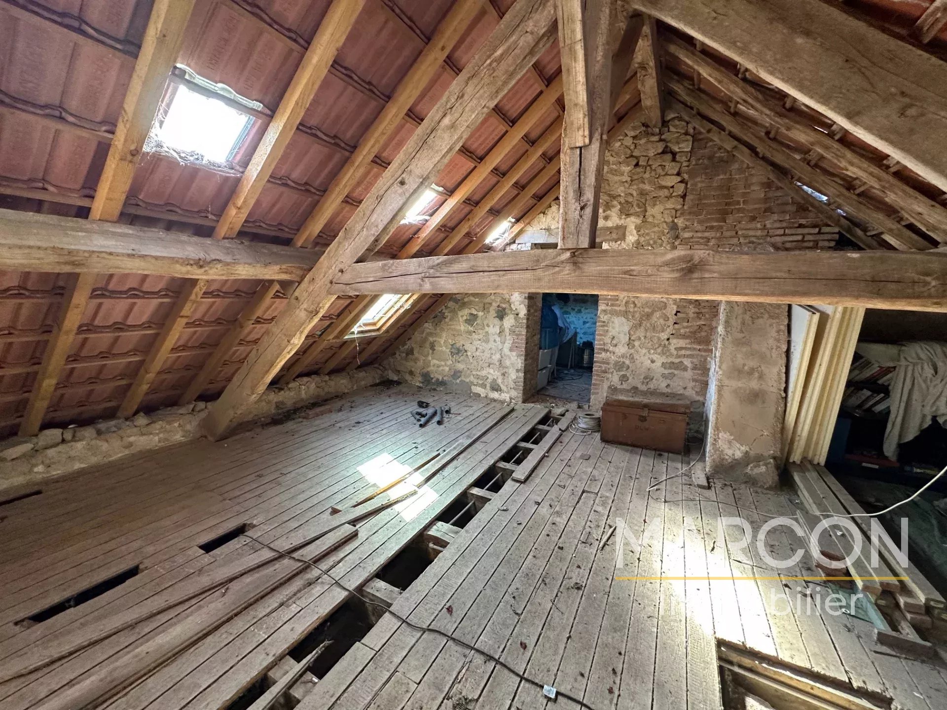 La maison principale se compose d'une cuisine, d'un salon, d'un grand séjour au rez de chaussée, au 1er étage il y a deux chambres , une salle de bain et un grenier aménageable.
